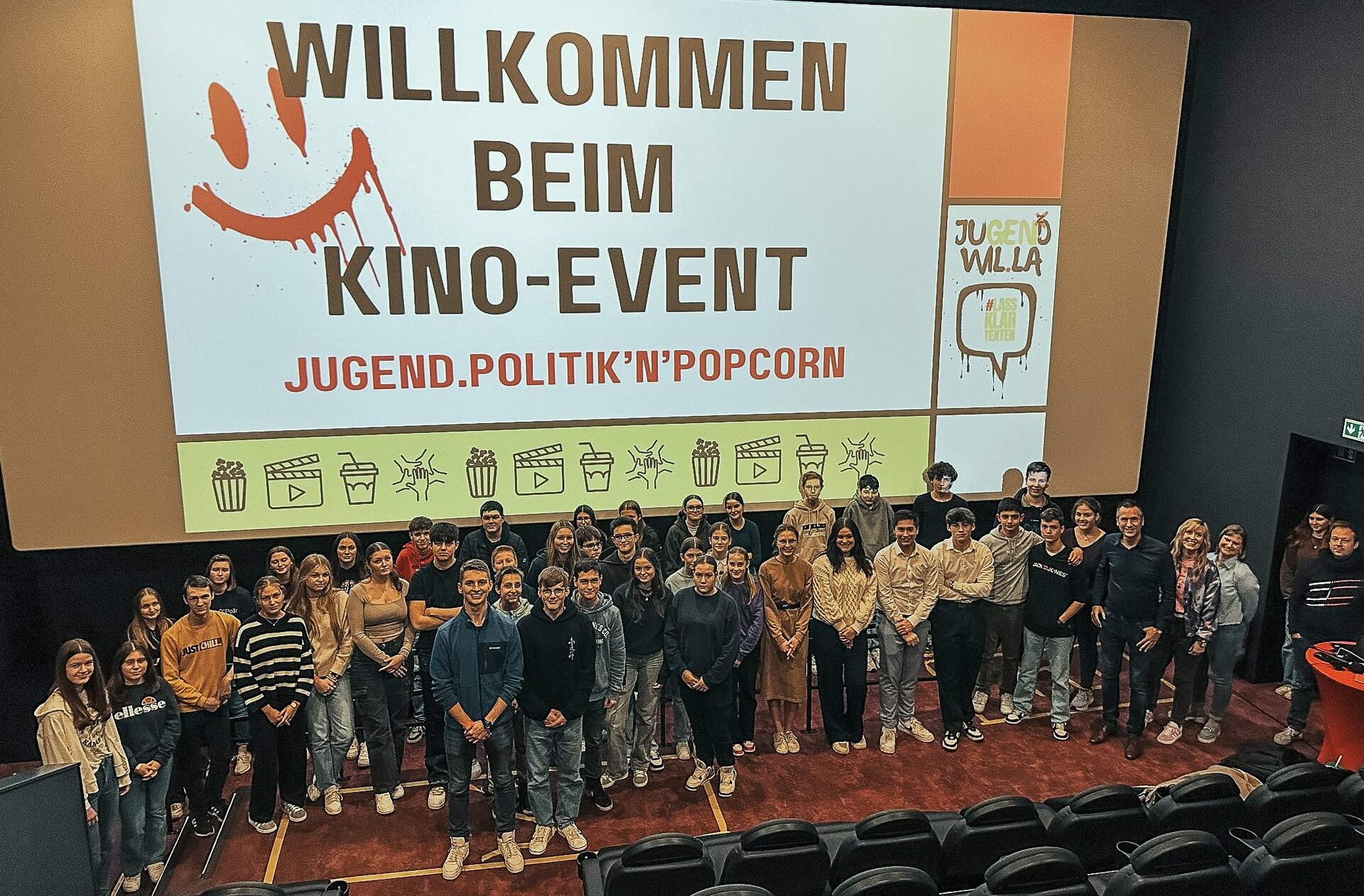 Ab 16.30 Uhr versammelte sich dort die Generation Z, um von Bürgermeister Manuel Follmann mehr über die zukünftige Jugendvertretung der Verbandsgemeinde Wittlich-Land zu erfahren. Nach einer herzlichen Begrüßung startete Follmann zunächst mit einer Online-Umfrage zu aktuellen Themen, Bedürfnissen wie auch Wünschen der Zielgruppe. Er fragte die Erwartungen an ein Jugendparlament ab und gab Raum für Ideen und Vorschläge. Anschließend begrüßte er live zugeschaltet auf der großen Kinoleinwand die Politik-Influencer Ann Cathrin Riedel aus Berlin sowie die Mädels Lisa Fieger und Elfi Weiss von „Politik verstehen“ aus Regensburg.