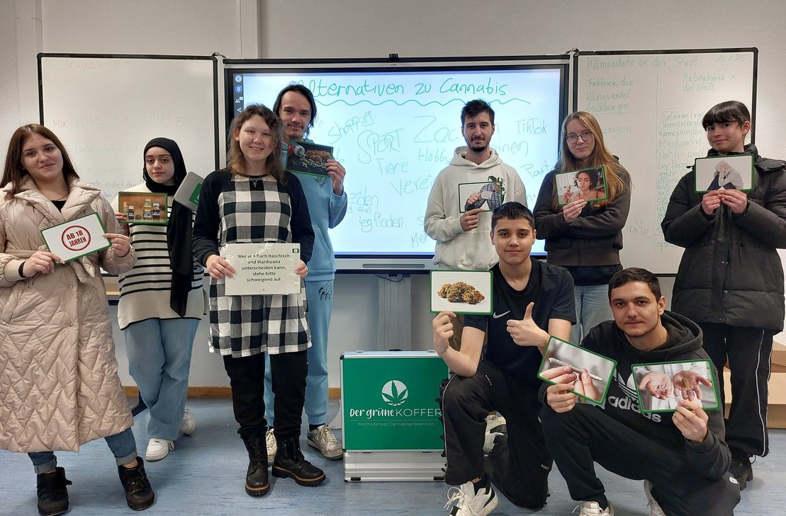 Der „Grüne Koffer“ bietet nicht nur fundierte Informationen zu Herkunft, gesundheitlichen Gefahren und rechtlichen Aspekten, sondern auch interaktive Methoden, um mit Jugendlichen ins Gespräch zu kommen. In einem vertrauensvollen Austausch mit Schulsozialarbeitern und Lehrkräften wurden Fragen, Erfahrungen und Missverständnisse rund um das Thema Drogen offen diskutiert.