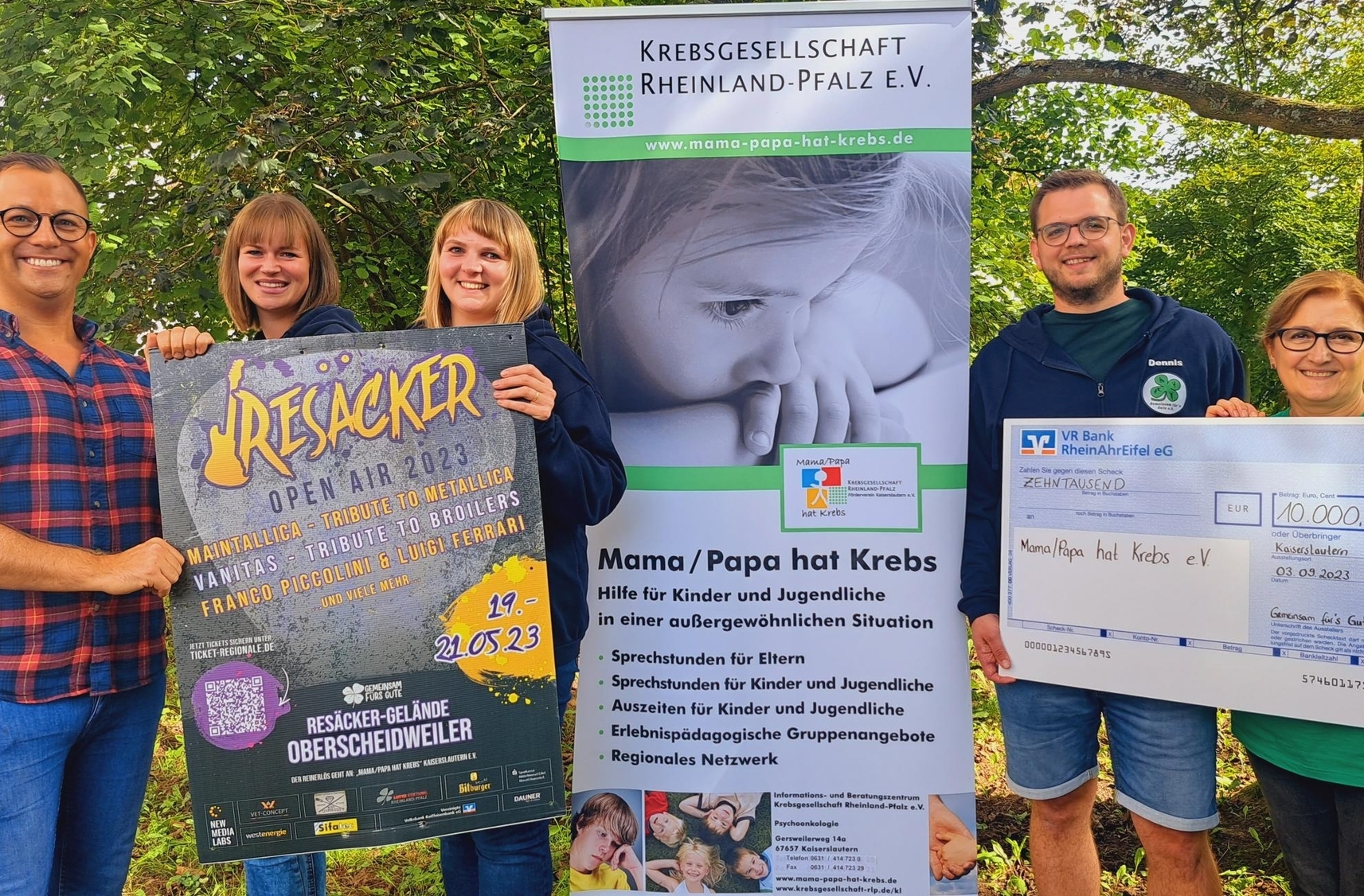 »Wir sind stolz darauf, den Gesamterlös in Höhe von 10.000 Euro an ‚Mama/Papa hat Krebs‘ in Kaiserslautern überreicht zu haben«, sagen die Veranstalter, der Verein »Gemeinsam für‘s Gute«.