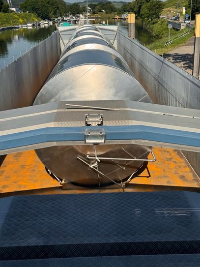 Riesige Edelstahltanks durch Kues transportiert