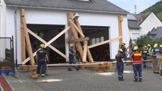 Die Baufachberater des THW aus Wittlich diagnostizierten sogenannte Setzungsrisse. Diese entstehen durch Bewegungen im Baugrund und können die Statik eines Gebäudes erheblich beeinträchtigen. Um jegliches Risiko für die Einsatzkräfte und die Bevölkerung auszuschließen, sicherten die THW-Kräfte das Gebäude mit mehreren stabilen Holzkonstruktionen.