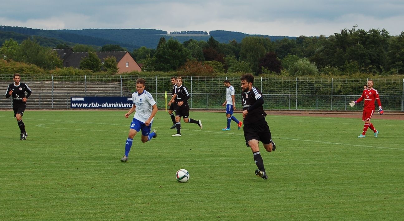 Darunter war auch Mittelfeldspieler Sebastian Ting, mit dem Linz in der Halbzeitpause des vorletzten Heimspiels gegen Arminia Ludwigshafen (1:2) noch einen heftigen Disput hatte und ihn vorerst suspendierte, Ting nun aber zurück in den Kader holte und ihn der 70. Minute einwechselte. "Wir hatten ein gutes, konstruktives Gespräch", berichtet der Coach. Im Duell mit Schott Mainz war Salmrohr zwar von Beginn an gut im Spiel, machte es dem Gegner aber in einer entscheidenden Situation wieder viel zu leicht: Nach einem Pass in die Tiefe schaltete der Mainzer Goalgetter Can Cemil Oezer in der 15. Minute schneller als Daniel Schraps und Pascal Meschak, stand alleine vor Keeper Daniel Ternes und schob zum 0:1 ein. In der Folge wurde auf beiden Seiten das Mittelfeld oft schnell überbrückt. Trotz des frühen Gegentreffers merkte man dem FSV frisches Selbstvertrauen nach dem ersten Pflichtspielsieg in der neuen Saison (3:0 am Mittwoch im Rheinlandpokal bei Bezirksligist SG Schneifel Stadtkyll) an. Einige Male näherten sich die Gastgeber im Laufe der ersten Hälfte gefährlich dem Mainzer Tor, mussten aber in Person von Daniel Ternes und Pascal Meschak auch alles riskieren, um in der 33. Minute zunächst gegen Oezer und dann gegen den früheren Mainz-05-und MSV-Duisburg-Profi Srdjan Baljak in der 33. Minute das 0:2 zu verhindern. Wenig später setzte der unglücklich agierende Deniz Siga nach Flanke des agilen Meliani Saim einen Kopfball knapp neben das Tor (35.). Saim (39.) und Siga (43.) verpassten kurz danach das Ziel erneut nur um Haaresbreite.