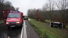 Durch die Wucht des Zusammenstoßes überschlug sich der Pkw mehrfach und kam schließlich in einem etwa zwei Meter tiefen Straßengraben entlang einer Baumreihe seitlich zum Stillstand. Der Traktor kippte auf die Seite und blieb auf der Fahrbahn liegen. Die Bergung der Fahrzeuge erfolgte durch ein entsprechendes Bergungsunternehmen.