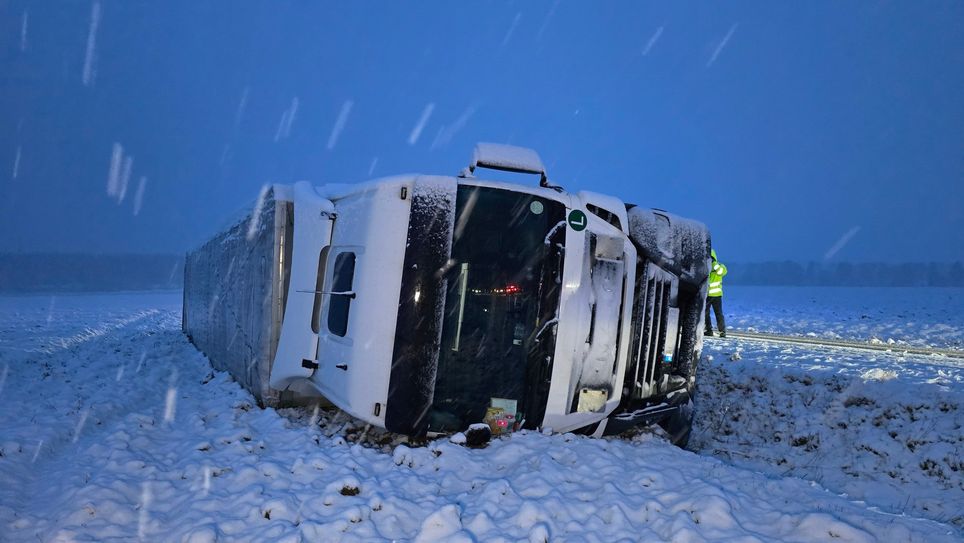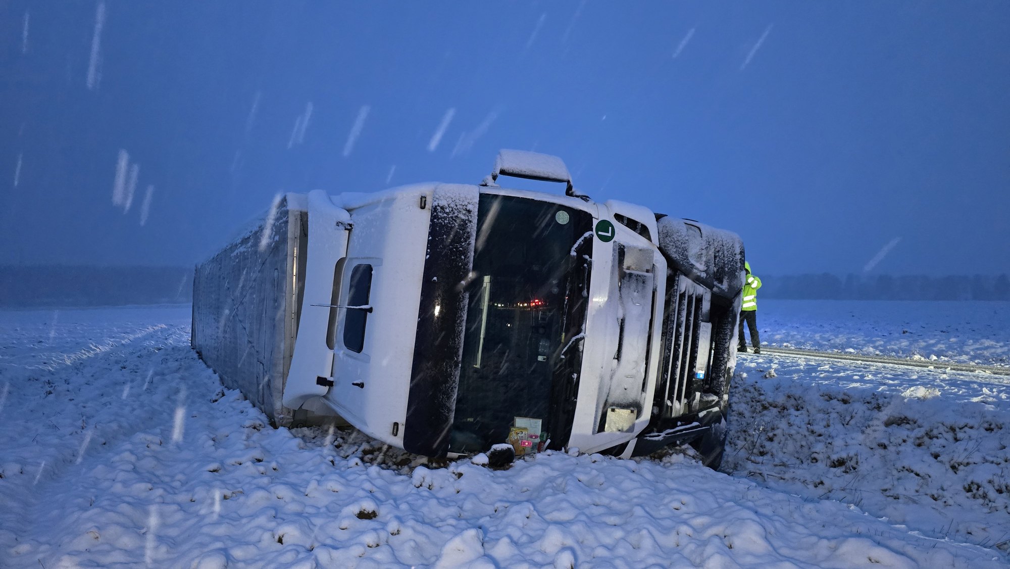 Der Unfall ereignete sich gegen 16.45 Uhr, als dichter Schneefall die Straßenverhältnisse erheblich verschlechterte. Laut ersten Angaben der Polizei Morbach war der Fahrer des LKW wohl mit unangebrachter Geschwindigkeit unterwegs und verlor in der rutschigen Kurve die Kontrolle über das Fahrzeug. Der Lastwagen blieb im Straßengraben auf der Seite liegen, wodurch es auf der L159 zu erheblichen Einschränkungen kam. Für die Bergung muss diese sogar vollgesperrt werden. Eine Bergung ist Witterungsbeständig aktuell noch nicht möglich.