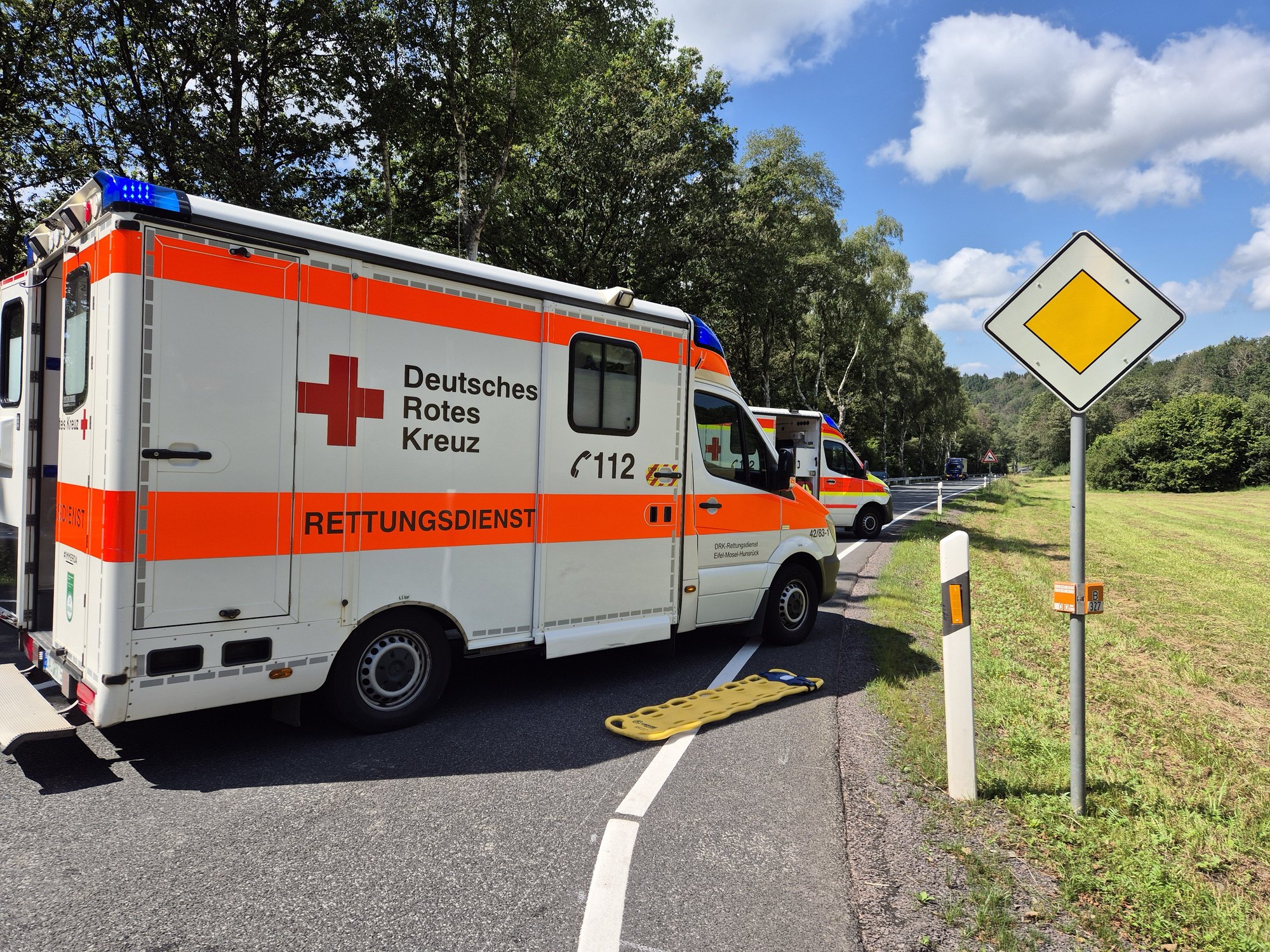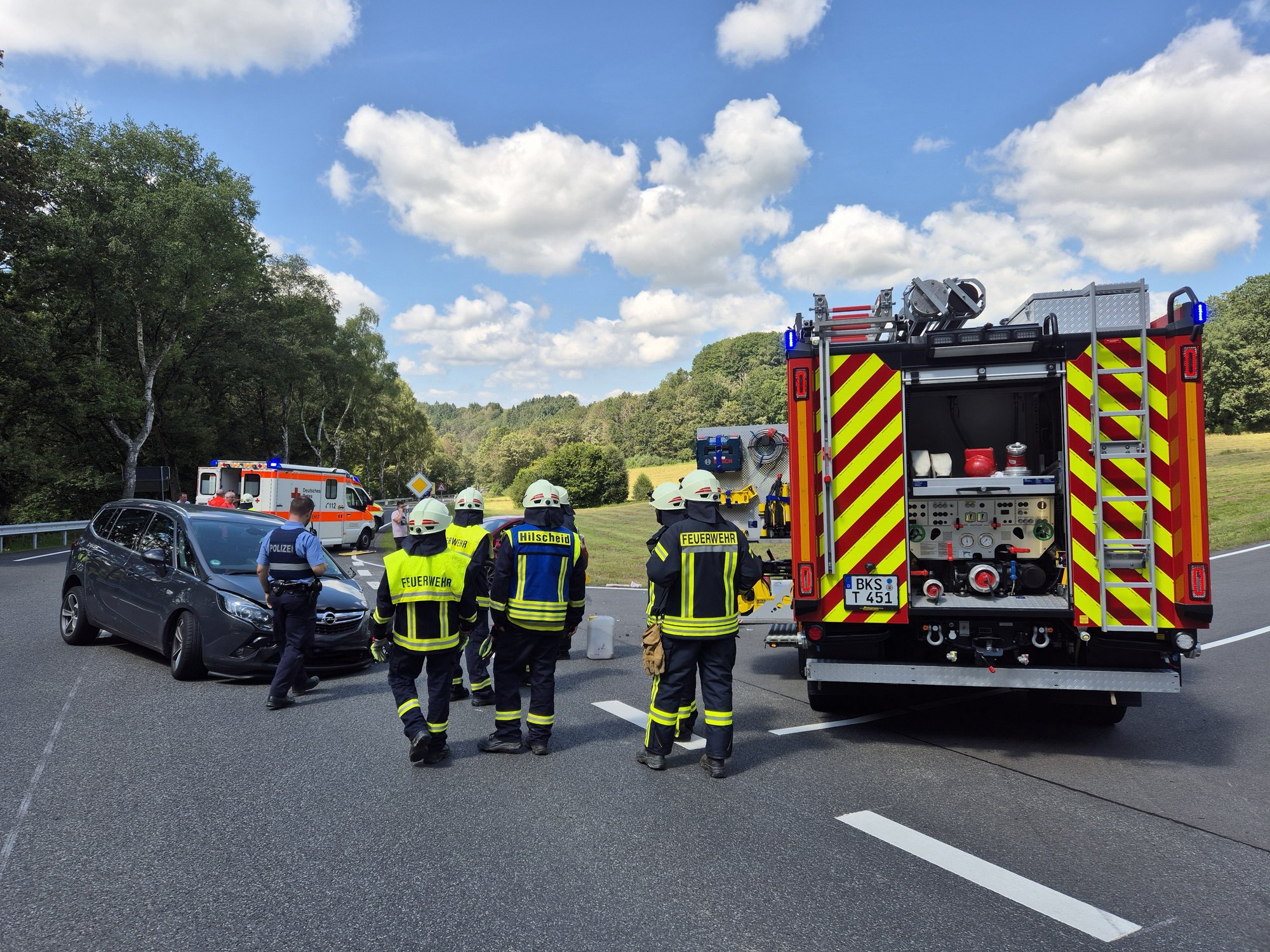 Am Montagmorgen, 5. August, gegen 12.30 Uhr, kam es auf der B327 zwischen Hermeskeil und Thalfang auf Höhe der Kreuzung Hilscheid zu einem schweren Verkehrsunfall. Hier sind im Kreuzungsbereich zwei Autos frontal zusammengestoßen. Dabei wurden vier Insassen verletzt. Zwei kamen mit schweren Verletzungen ins Krankenhaus, zwei wurden leicht verletzt und ambulant vor Ort versorgt.