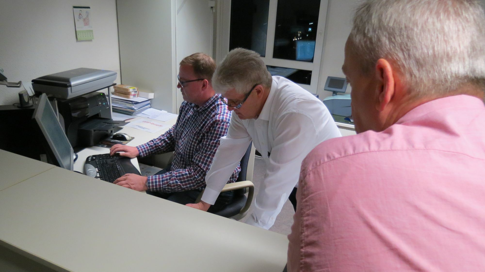 Die Grafiken zeigen das amtlich bestätigte Endergebnis aller zwölf Stimmbezirke der Stadt Wittlich zur Landtagswahl 2016. Auch hier war die Wahlbeteiligung deutlich höher als bei der Wahl 2011. Der landesweite Trend zur Briefwahl bestätigte sich in der Kreisstadt ebenfalls. Die Grafiken kommen von der Stadtverwaltung Wittlich. Grafik 1 zeigt die Erst-, Grafik 2 die Zweitstimmen. Das Foto entstand beim Übertrag der Stimmen aus den einzelnen Wahlbezirken in die Gesamt-Ergebnisliste. Im Einsatz von links Franz-Rainer Schmitt, Rolf Becker und Rainer Stöckicht. Foto: P.Geisbüsch