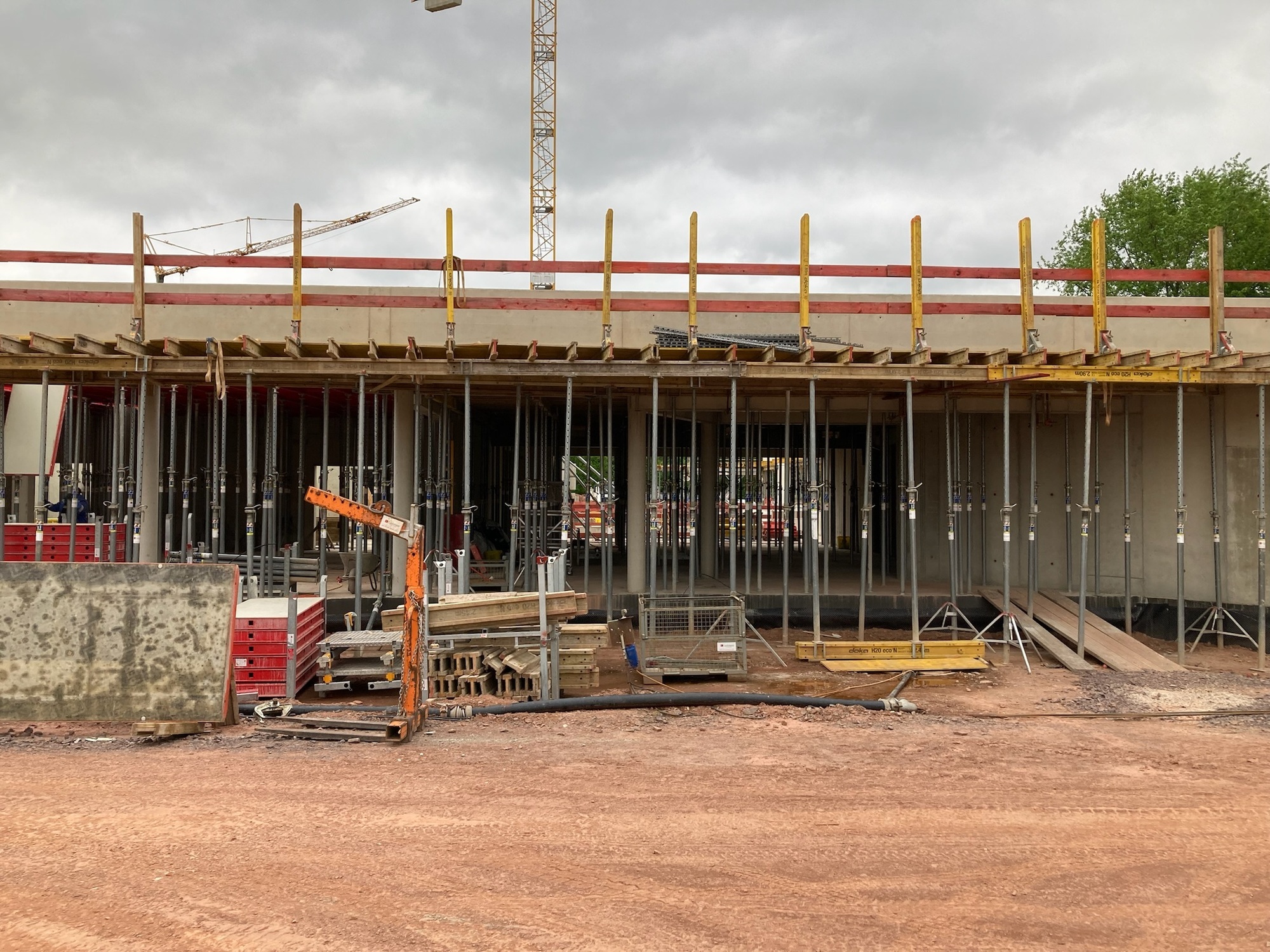 Das 50 m Becken wurde teilverfüllt und die Fundamente für die Linienbewässerung betoniert. Innerhalb des alten Beckens wurden zwei Trennwände einbetoniert, um das zukünftige Mehrzweckbecken mit Breitrutsche und 4 x 50 m Bahn von dem Erlebnisbecken mit Strömungskanal zu trennen. Teilweise wurden die Edelstahlwände bereits montiert und ausgerichtet. Einer der nächsten Schritte ist neben der Betonage der Erdgeschossdecke die Montage der Stahlkonstruktion des festen und verfahrbaren Daches ab Juli 2023.