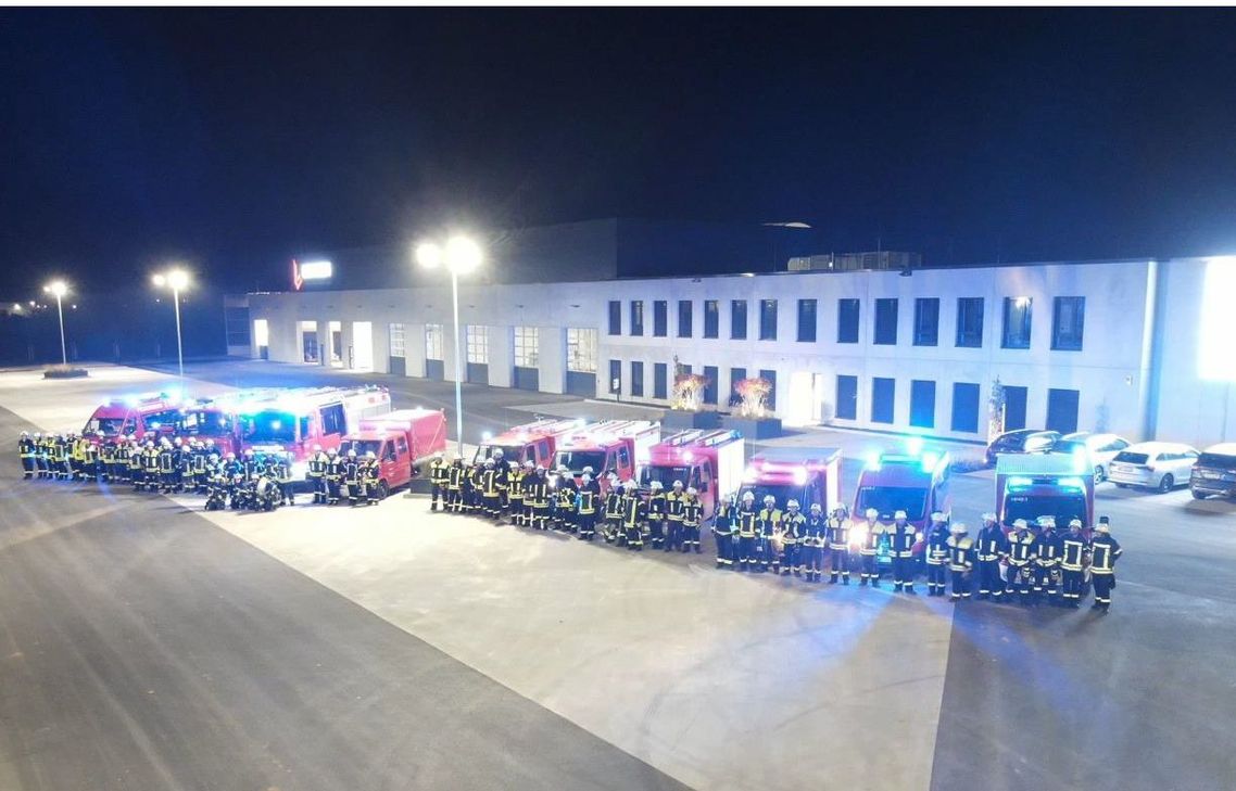 Am Freitagabend wurde es ernst für die Freiwillige Feuerwehr Hetzerath und die Einsatzkräfte des Stützpunktbereichs: Auf dem Gelände der Unternehmensgruppe Lehnen im Industriepark Region Trier fand eine große Abschlussübung statt. Über 60 Feuerwehrleute aus umliegenden Gemeinden kamen zusammen, um gemeinsam unter realitätsnahen Bedingungen verschiedene Notfallszenarien zu meistern. Neben den Feuerwehren aus Dierscheid, Heidweiler, Rivenich, Sehlem und Esch nahmen auch die Absturzsicherungs-Teileinheit aus Sehlem, die Drohneneinheit der Feuerwehr Hetzerath, der Einsatzleitwagen der Feuerwehr Salmtal sowie der stellvertretende Wehrleiter Dirk Minor der Verbandsgemeinde Wittlich-Land teil. Die gesamte Übung dauerte ca. drei Stunden.