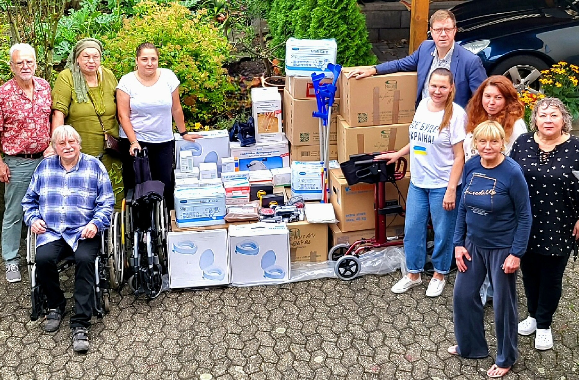 In Verbindung mit den ebenfalls gespendeten - z.T. kurz vor dem Ablauf stehenden - Medikamenten können somit die eingegangenen Spendengelder sehr effizient für die Beschaffung dringend benötigter medizinischer Hilfsmittel eingesetzt werden. Wer medizinische Dinge wie Rollstühle, Krücken, Rollatoren, Prothesen, Hygieneartikel (z.B. Erwachsenenwindeln) oder Verbandskästen abzugeben haben, kann sich an die Ukrainehilfe wenden: ukrainehilfe.tt@gmail.com . Bei Bedarf werden die Sachen auch abgeholt und regelmäßig, etwa wöchentlich, an jeweils unterschiedliche Empfänger in akute Kriegsregionen geliefert.