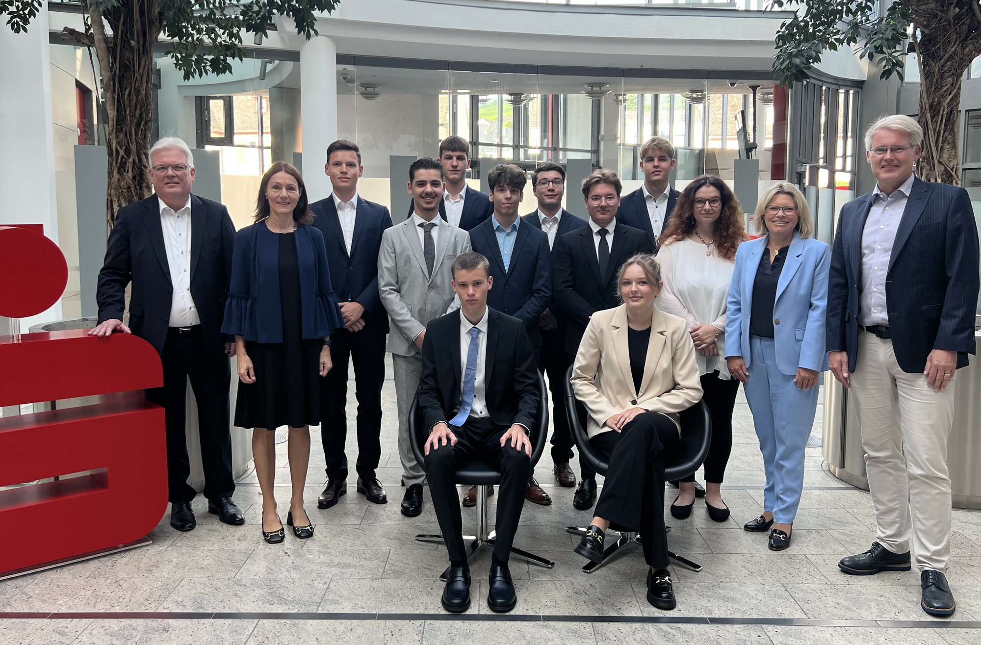 Die neuen Auszubildenden zum Bankkaufmann/-frau wurden vom Vorstandsvorsitzenden Eric Westerheide, Vorstand Volker Knotte, Personalleiterin Silke Blatt und Ausbildungsleiterin Tanja Nummer in der Hauptstelle in Bernkastel-Kues begrüßt. Zusätzlich zu den zehn Bankkaufleuten starteten auch zwei Jahrespraktikantinnen gemeinsam mit der Sparkasse in eine spannende Zukunft. Die Basis für eine gute und erfolgreiche Ausbildung wird traditionell mit einem viertägigen Einführungsseminar gelegt. Hier haben die Auszubildenden die Gelegenheit, sich untereinander kennenzulernen, Teamgeist zu entwickeln und bereits erste Einblicke in die Sparkassenwelt und ihre Ausbildung zu erhalten.
