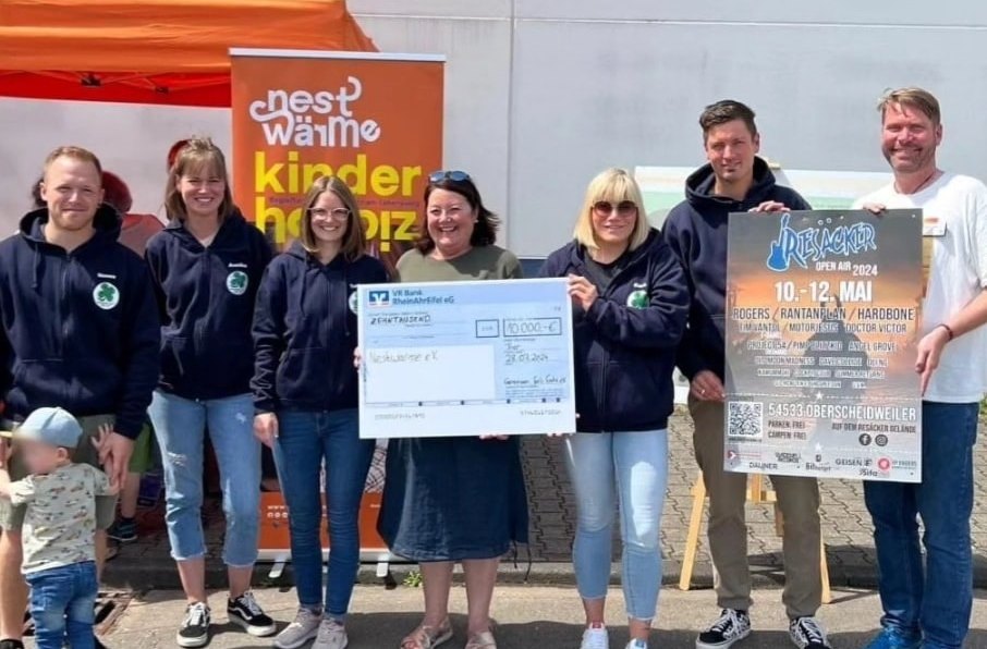 Regionale und bundesweite Bands mit eigenen Songs aus den Genres Rock, Metal, Hardrock, Punkrock und Folk, zwei Bühnen, internationale Künstler und ein "Familientag": Auch in diesem Jahr hat sich der ausrichtende Verein "Gemeinsam fürs Gute" mächtig ins Zeug gelegt. Der Erlös des ROA-Festivals für Musikliebhaber und Neugierige in Höhe von stolzen 10.000 Euro wurde nun an das Team von "Nestwärme e.V." übergeben. Durch diese Spende unterstützt der Verein die Arbeit und die Einrichtung des Kinder- und Jugendhospizes in Trier.