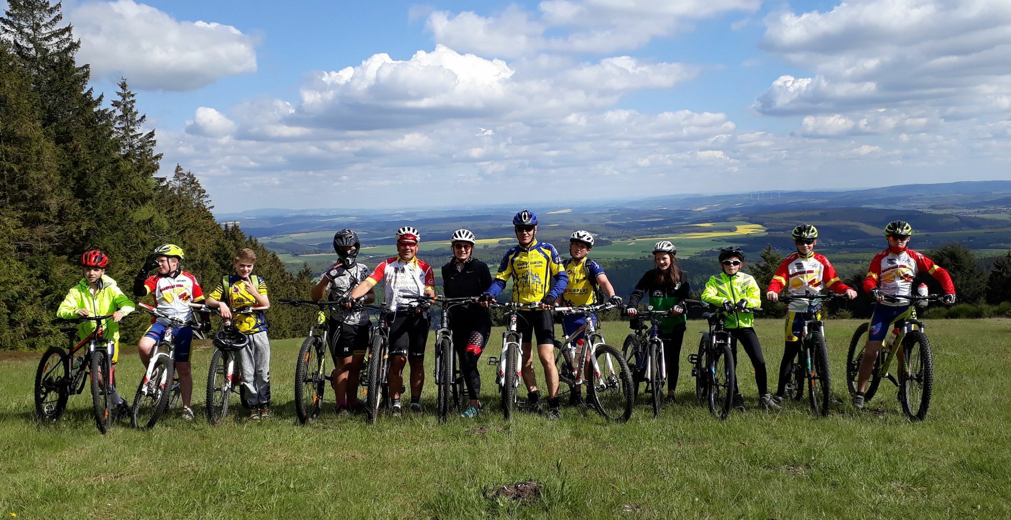 Alle zeigen an diesem Tag, dass die vielen Trainingskilometer ihre Wirkung entfalten, und erreichen ohne Murren den Idarkopf, wo sie den herrlichen Ausblick genießen. Bei der Rückfahrt werden die Fahrer für ihre Anstrengungen von der Familie Neuls in Kleinich belohnt: Hier wartet eine fürstlich gedeckte Kuchentafel auf sie, an der sich alle nach Herzenslust bedienen können. Zum Abschluss folgt dann ein schwieriger Trail von Fronhofen ins Kautenbachtal, den alle sturzfrei hinter sich bringen.