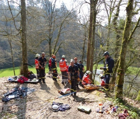 Samstagmorgen, strahlender Sonnenschein, alle Teilnehmer der sieben DRK-Ortsvereine und drei Feuerwehren aus Manderscheid, Sehlem und Eckfeld versammeln sich in den Räumlichkeiten des Ortsvereins Manderscheid, um mit einem gemeinsamen Frühstück gut gestärkt in den Tag zu starten. Danach gemeinsamer Kfz-Marsch zur Burg Manderscheid, wo insgesamt drei Stationen aufgebaut werden: Eine zum Thema „Steilhangrettung“, die zweite zur Simulation der „Rettung eines abgestürzten Gleitschirmfliegers“ und die dritte mit Themenschwerpunkt „Knotenkunde“ sowie „sicheres Vorgehen im Steilhang“. Nach einer gemeinsamen Mittagspause finden weitere Übungen an Stationen der DRK-Ortsvereine statt. Themenschwerpunkte hier: Aufbau eines Zeltes, Herz-Lungen-Wiederbelebung und Umgang mit medizinischem Equipment. Der Ausbildungstag endet für die Teilnehmer um 16 Uhr, nach wie vor bei strahlendem Sonnenschein, und mit einem Dank von Zugführer Michael Basten und DRK-Kreisbereitschaftsleiter Eric Schlöder für die rege Teilnahme. Foto: FF.