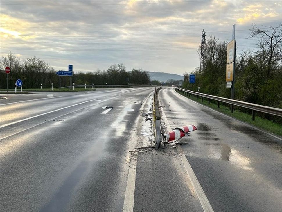 Am frühen Morgen des Ostersonntags, 31.0 März, bis 7.20 Uhr, befuhr ein/e unbekannte/r Pkw-Fahrer/in mit seinem dunklen Hyundai die B49 / L53, vom Stadtgebiet Wittlich kommend, in Richtung Wengerohr. In Höhe der beiden linksseitigen Zufahrten zur BAB A1 befanden sich auf diesem geraden Teilstück der B 49 Fahrbahnteiler, die die rechte Fahrspur von der mittleren Abbiege-/Einbiegespur trennten. Der Hyundai kollidierte mit einem zwischen der rechten Fahrspur und der Abbiegespur befindlichen Rohrpfosten und fuhr anschließend auf den beginnenden sowie ansteigenden Fahrbahnteiler auf.
