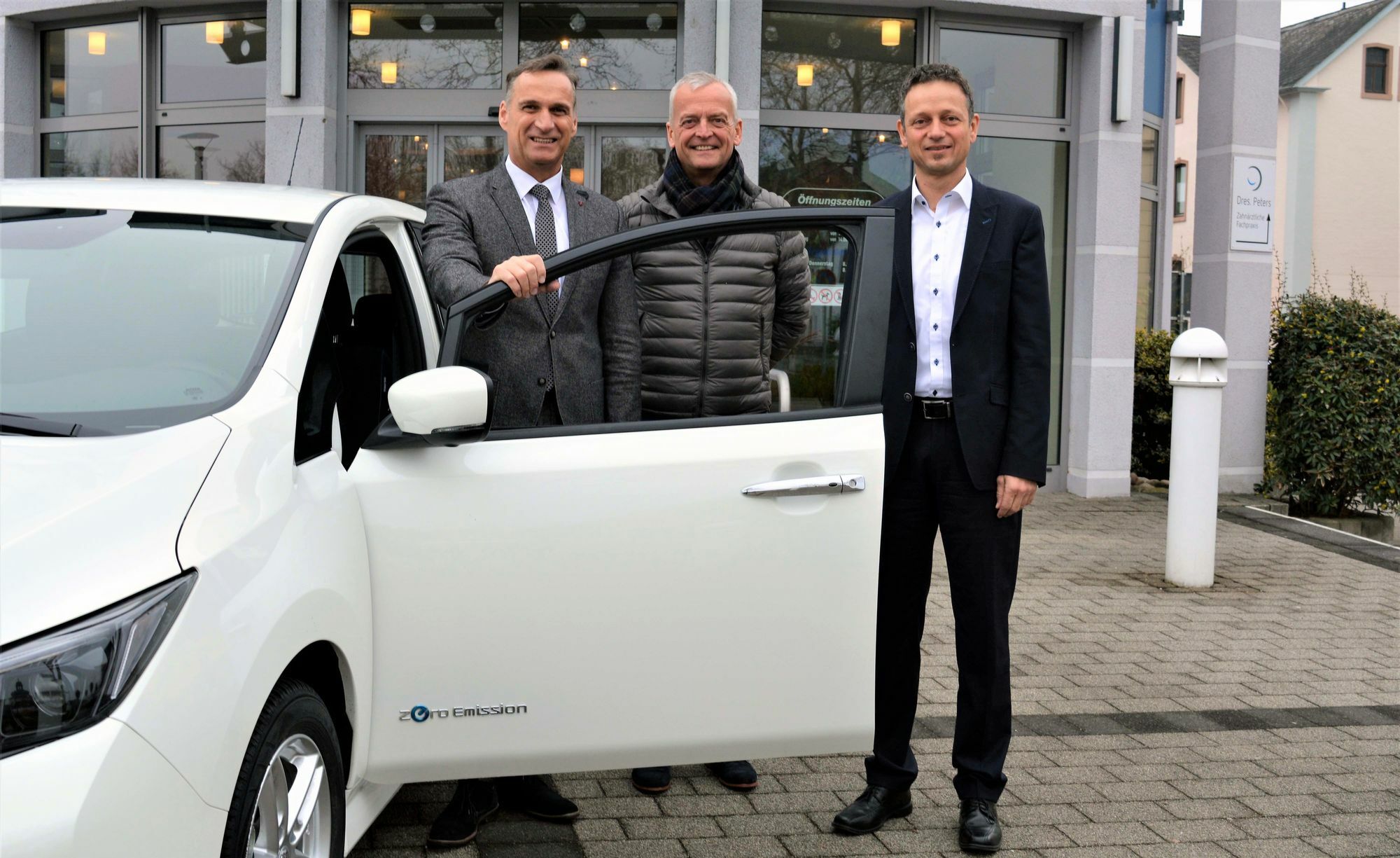 Der alltagstaugliche Wagen verfügt über einen Elektromotor und fährt bis zu 200 Kilometer mit einer Akkuladung. Bürgermeister Joachim Rodenkirch nahm heute das neue Fahrzeug gemeinsam mit Kollegen und Vertretern von innogy in Empfang. Der Wagen steht künftig für Dienstfahrten von Mitarbeitern der Verwaltung zur Verfügung.