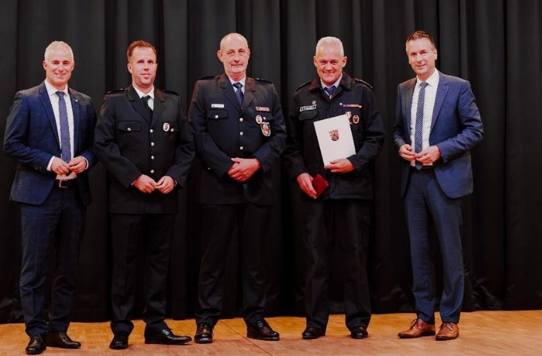Ein besonderer Höhepunkt des Abends war die Verleihung des Silbernen Feuerwehr-Ehrenzeichens am Bande an Wehrführer Dieter Treimetten (Platten) für seine herausragenden Verdienste um das Feuerwehrwesen. Diese Auszeichnung wird vom Minister des Inneren und für Sport Rheinland-Pfalz, Michael Ebling, verliehen und wurde durch Bürgermeister Manuel Follmann überreicht.