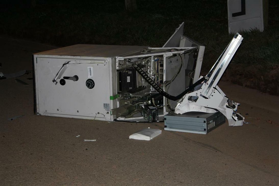 In einem angrenzenden Waldstück konnten sich die Einbrecher jedoch absetzen. Den Geldausgabeautomaten, den die Täter hinter einem Pkw herzogen, und auch eines der Fluchtfahrzeuge verloren sie bzw. ließen sie auf der Flucht zurück.