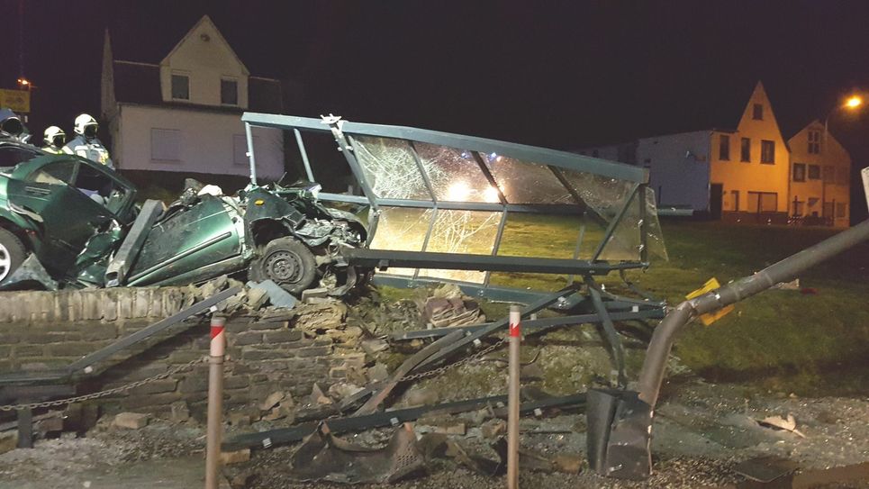 Am Freitag, 10. Februar, kurz vor 2 Uhr in der Nacht versuchten Polizisten in Höhe der Moselbrücke Bernkastel-Kues einen PKW zu kontrollieren. Als der Fahrer den Streifenwagen erkannte, beschleunigte er und raste davon. Die Funkstreife nahm die Verfolgung auf, konnte jedoch nicht ganz auf das flüchtende Fahrzeug aufschließen: Dessen Geschwindigkeit war zu hoch. Kurz hinter der Ortseinfahrt Andel, aus Richtung Bernkastel gesehen, verlor der Fahrer des flüchtenden PKW aufgrund seiner enorm überhöhten Geschwindigkeit die Kontrolle über das Fahrzeug und kam von der Fahrbahn ab. Der PKW fuhr in ein Bushaltehäuschen, riss eine Straßenlaterne um. Der Fahrer wurde durch den Aufprall aus dem Fahrzeug geschleudert und schwer verletzt. Die Polizisten erledigten die Erstversorgung bis zum Eintreffen des DRK. Im Zuge der Ermittlungen stellte sich heraus, dass der 26-jährige Fahrer per Haftbefehl gesucht wird und keinen Führerschein hat. Der Sachschaden beläuft sich auf etwa 20000 Euro. Im Einsatz waren die Feuerwehr Kues, das DRK und Notarzt sowie die Polizei Bernkastel-Kues. Foto: Polizei