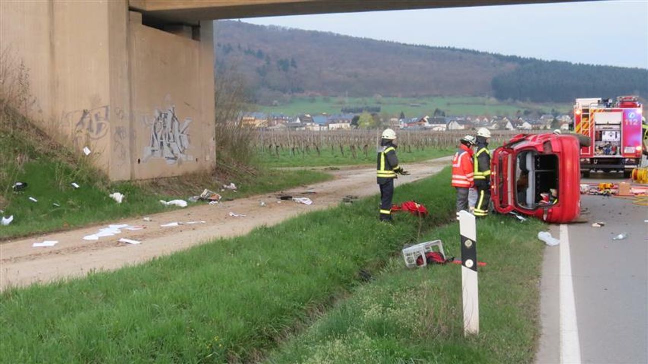 Am frühen Morgen des 10. April, gegen 6.40 Uhr, ereignete sich ein schwerer Verkehrsunfall auf der Landesstraße 47. Ein 36-jähriger Mann aus der Verbandsgemeinde Bernkastel-Kues kam mit seinem Fahrzeug von Klausen kommend in Richtung Mühlheim, vermutlich aufgrund übermäßigen Alkoholkonsums, nach rechts von der Fahrbahn ab und knallte gegen das Betonfundament einer Brücke. Daraufhin überschlug sich das Fahrzeug und blieb auf der Seite liegen. Der Fahrzeugführer wurde im Fahrzeug eingeklemmt und musste durch die Feuerwehr mit der Rettungsschere befreit werden. Der PKW wurde total beschädigt. Im Einsatz waren neben der Polizei Wittlich die Feuerwehren aus Bernkastel-Kues und Maring-Noviand sowie Notarzt und ein Rettungswagen. Die L 47 blieb für etwa eine halbe Stunde voll gesperrt. Foto: Polizei