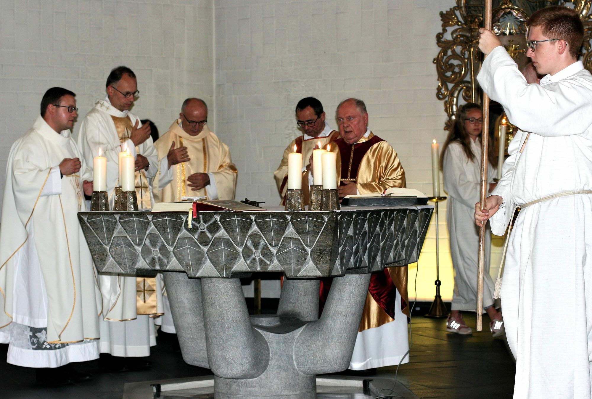 Die Geschichtsbücher weisen eine bewegte Geschichte der heutigen 50 Jahre alten Manderscheider Pfarrkirche auf: 1692 die Einweihung einer „neuen“ katholischen Kirche, 1720 nach kompletter Zerstörung durch Brand die Einweihung des Neubaus, der wiederum 1945 durch eine Mine so zerstört wurde, dass er komplett abgerissen werden musste. Allein der Kirchturm blieb bis heute erhalten. Die neue „Lebensbaumkirche“ wurde am 10. August 1968 eingeweiht. Aus ihrem Taufbecken in der Krypta entwächst ein Lebensbaum in Form einer Säule. Der Lebensbaum durchstößt die Decke und wächst in den Chorraum der Kirche. Seit der kriegsbedingten Abgabe der vierten Glocke 1942 fehlte diese im Glockenturm. Durch die Spendenbereitschaft der Manderscheider konnte sie in Brockscheid neu gegossen werden. Knapp 23.000 Euro kamen in kurzer Zeit, organisiert vom stellvertretenden Vorsitzenden des Kirchengemeindeverbandes, Georg Fox, zusammen. Pfarrer Paul Eich und Kooperator Jürgen Fuhrmann, die Verantwortlichen in der Pfarreiengemeinschaft, gestalteten die Jubiläumsfeier gemeinsam mit Prälat Professor Dr. Max Hommens aus Ayl an der Saar, dem ehemaligen Manderscheider Pastor Michael Jaster, den Pfarrern Rudi Heck (Landscheid) und Jonas Weller (Piesport) sowie Diakon Andreas Maria Baumeister (zuletzt Manderscheid, jetzt Gillenfeld). Der Kirchenchor unter der Leitung von Günther Jung sang mit der Missa Arbore Vitae die von dem Manderscheider Komponisten Neumann eigens für die Lebensbaumkirche komponierte lateinische Messe. Nach dem Gottesdienst wurde die neue „Franziskusglocke“ eingeweiht. Marianne Röhl, Klaus Metzgeroth und Oliver Simon entlockten als Pate der neuen Orgel derer die ersten Töne. Auch der Musikverein Manderscheid spielte. Bevor die Glocke schließlich an ihren festen Platz kommt, wird sie noch einmal zurück zur Glockengießerei Brockscheid gebracht, um dort für den Einbau in den Glockenturm vorbereitetet zu werden. Fotos: FF