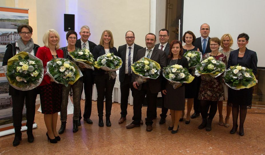 Einmal 40 Jahre und acht mal 25 Jahre ... in der Summe 240 Jahre Betriebszugehörigkeit: Für diese stolzen Jubiläen konnte die Volksbank / Raiffeisenbank dieser Tage acht Mitarbeiterinnen und einen Mitarbeiter ehren. Im Beisein zahlreicher Kolleginnen und Kollegen fand die Feier im Barocksaal des Kloster Machern statt. Geehrt wurden: Maria Coen (40 Jahre, 3.v.r.) jeweils 25 Jahre (auf dem Foto von links): Carmen Schneiders, Katrin Morsch, Regina Risch, Helga Weber, Jörg Einig, Elfriede Lauxen, Maria Zenzen und Pia Seibel.     Foto: VVR