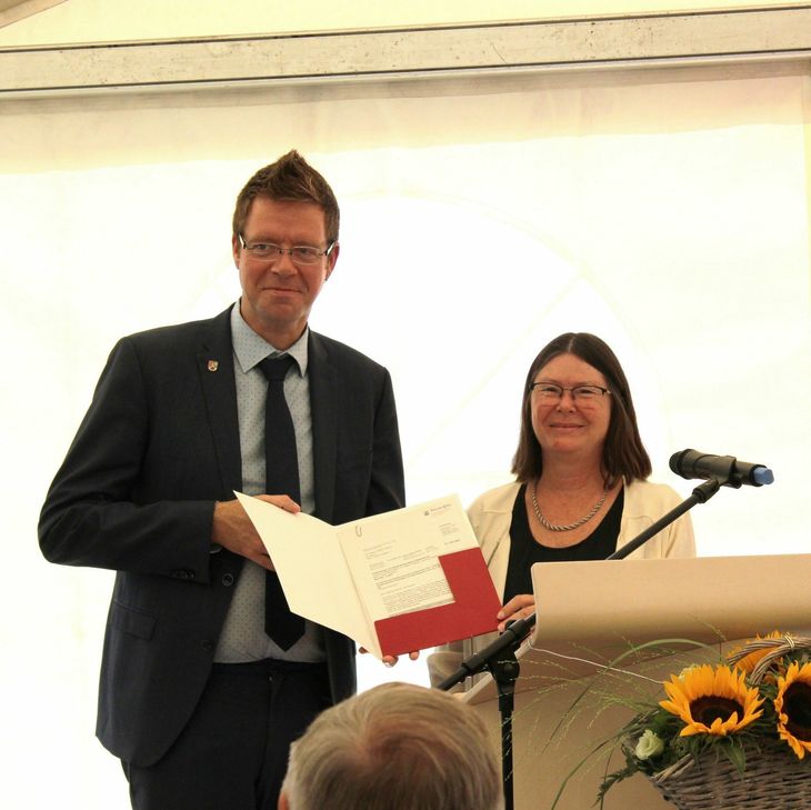 Umweltministerin Ulrike Höfken überreichte den Förderbescheid vergangene Woche beim symbolischen Spatenstich in Bengel an VG-Bürgermeister Marcus Heintel. »Der Klimawandel macht eine zukunftsfähige Trinkwasserversorgung durch Versorgungsverbünde notwendig,« sagte Höfken. »Gleichzeitig ist es unerlässlich, unsere Wasserressourcen bestmöglich zu schützen. Denn Mikroplastik, Spurenstoffe oder Düngemittel sind die aktuell brisantesten Bedrohungen für unsere Gewässer ...«