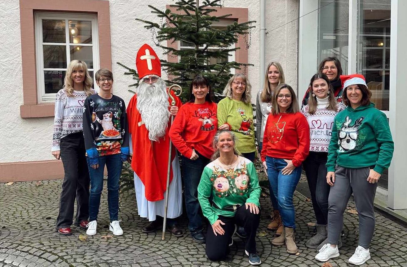 Im Rahmen der Aktion „Weihnachten in Wittlich-Land“ schmückten Kinder aus der Region einen großen Tannenbaum mit selbstgestalteten Weihnachtskugeln. Die kreativen Werke übergaben sie voller Stolz persönlich an den Nikolaus. Als besonderes Highlight erhielten die Kinder als Dankeschön frisch gebackene Weckmänner, die die Bäckerei Wildbadmühle zur Verfügung stellte. Auf den Rückseiten der Kugeln hinterließen die jungen Künstler liebevolle Wünsche, die den Nikolaus sichtlich berührten. Auch das Team der Verwaltung zeigte sich in festlicher Stimmung.