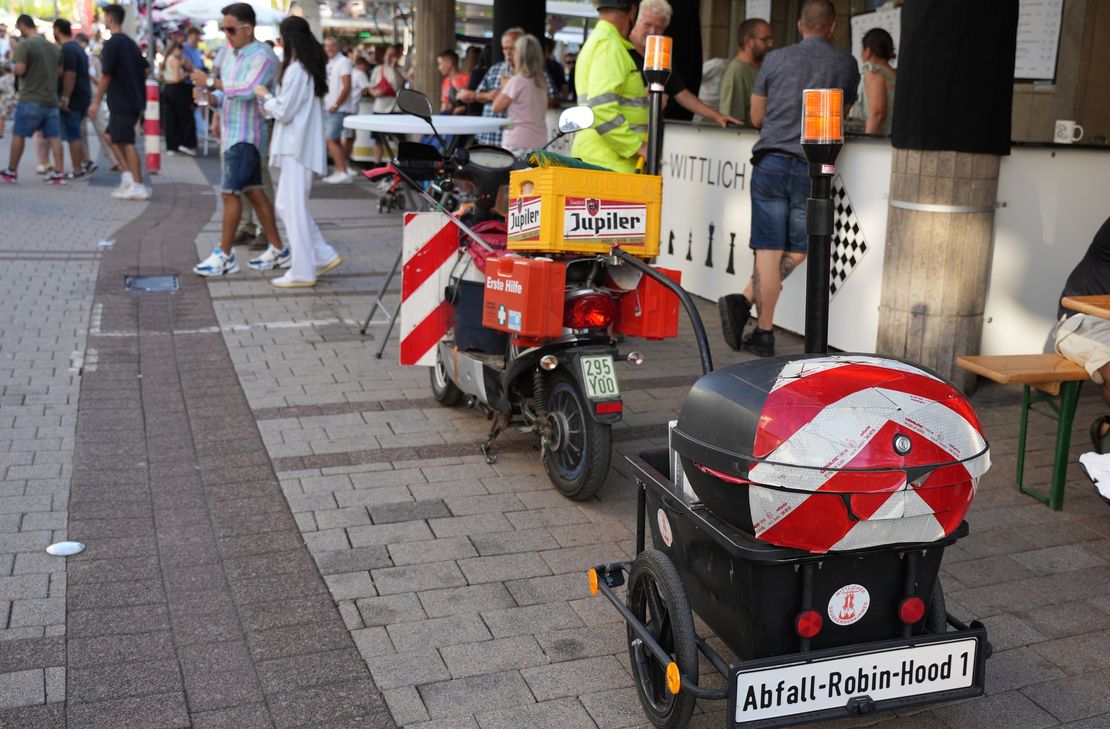 Der Mann, der sich selbst diesen Namen gegeben hat, ist mit einem Roller und einem kleinen Anhänger unterwegs. Auf dem Anhänger prangt in großen Buchstaben sein selbst gewähltes „Kennzeichen“: „Abfall Robin Hood“. Seine Mission ist simpel – und doch außergewöhnlich: Er sammelt den Müll auf, den andere achtlos auf die Straßen und Plätze werfen.