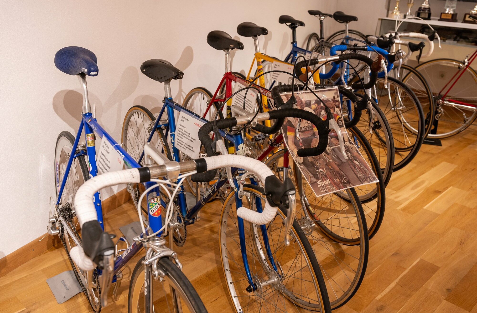 Rennräder aus sechs Jahrzehnten Wolltrikots, Lederhelm? Ja, auch das ist "Geschichte". Ebenso wird eine Auswahl der vielen Fotos von der Tour de France (ab 2004) gezeigt. Aufgenommen hat sie der Wittlicher Radsportfan und Amateurfotograf Walter Lescher. Unter den 25 Exponaten entdeckt der Besucher Rennräder aus sechs Jahrzehnten, die Entwicklung, die Wertigkeit in dieser Zeit sowie Räder aus neun Nationen.