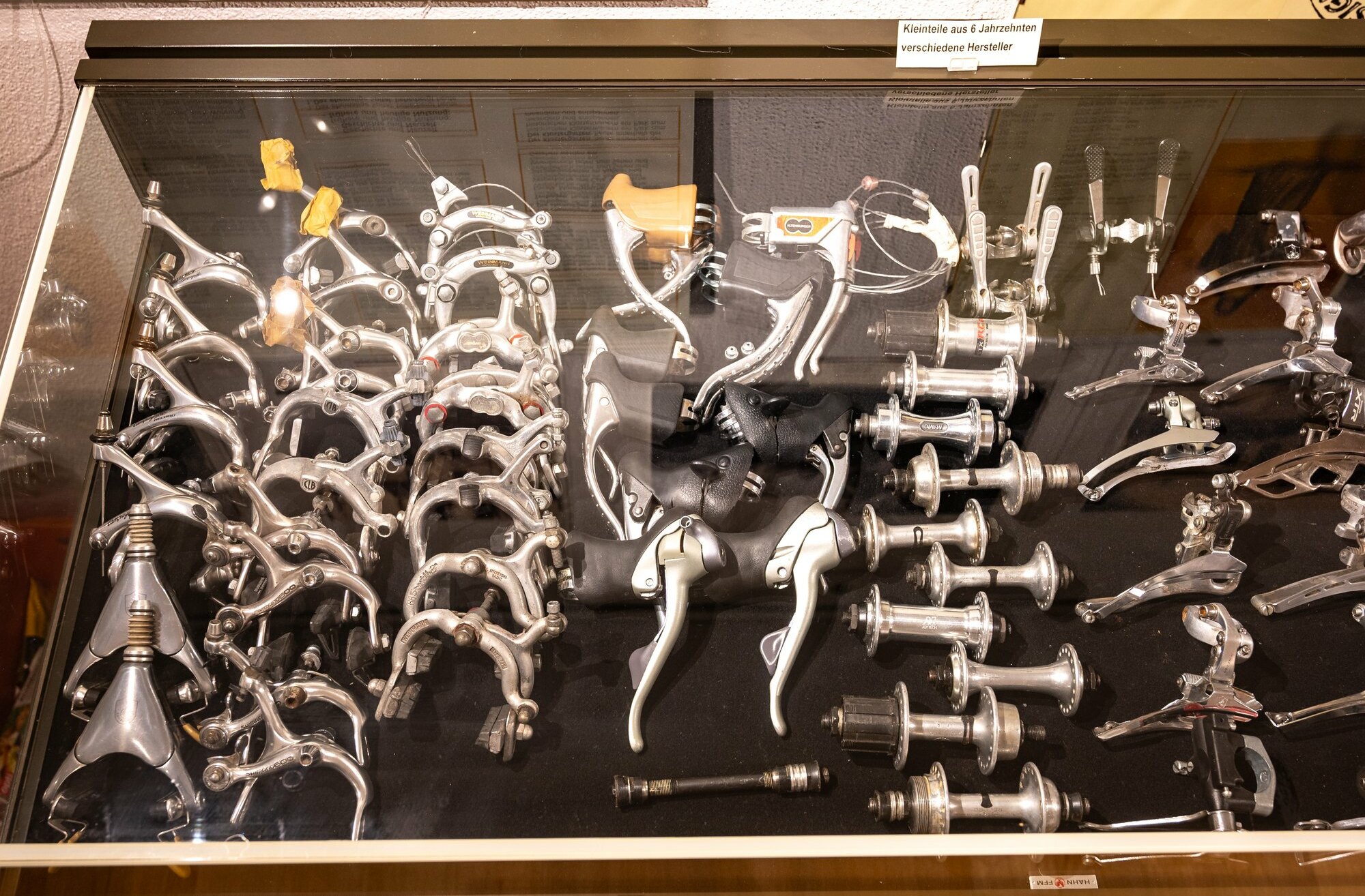 Komponenten der Hersteller von u.a. Campagnolo, Shimano, Sram und Huret sind zu sehen. Weitestgehend von Hand mit viel Liebe zum Detail geschaffen zeigen sich diese sportlichen "Fortbewegungsgeräte". Weniger ist hier nicht nur mehr, sondern auch schöner. Da die meist mit Stahl, Edelstahl, Aluminium und Carbon gebauten Rennräder fast unkaputtbar sind, kann man sie auch als besonders nachhaltige, ökologische und gesunde Antithese zu den immer größer und schwerer werdenden Fahrzeugen der Gegenwart interpretieren. Die Ausstellung ist noch bis zum 2. Juni zu sehen.