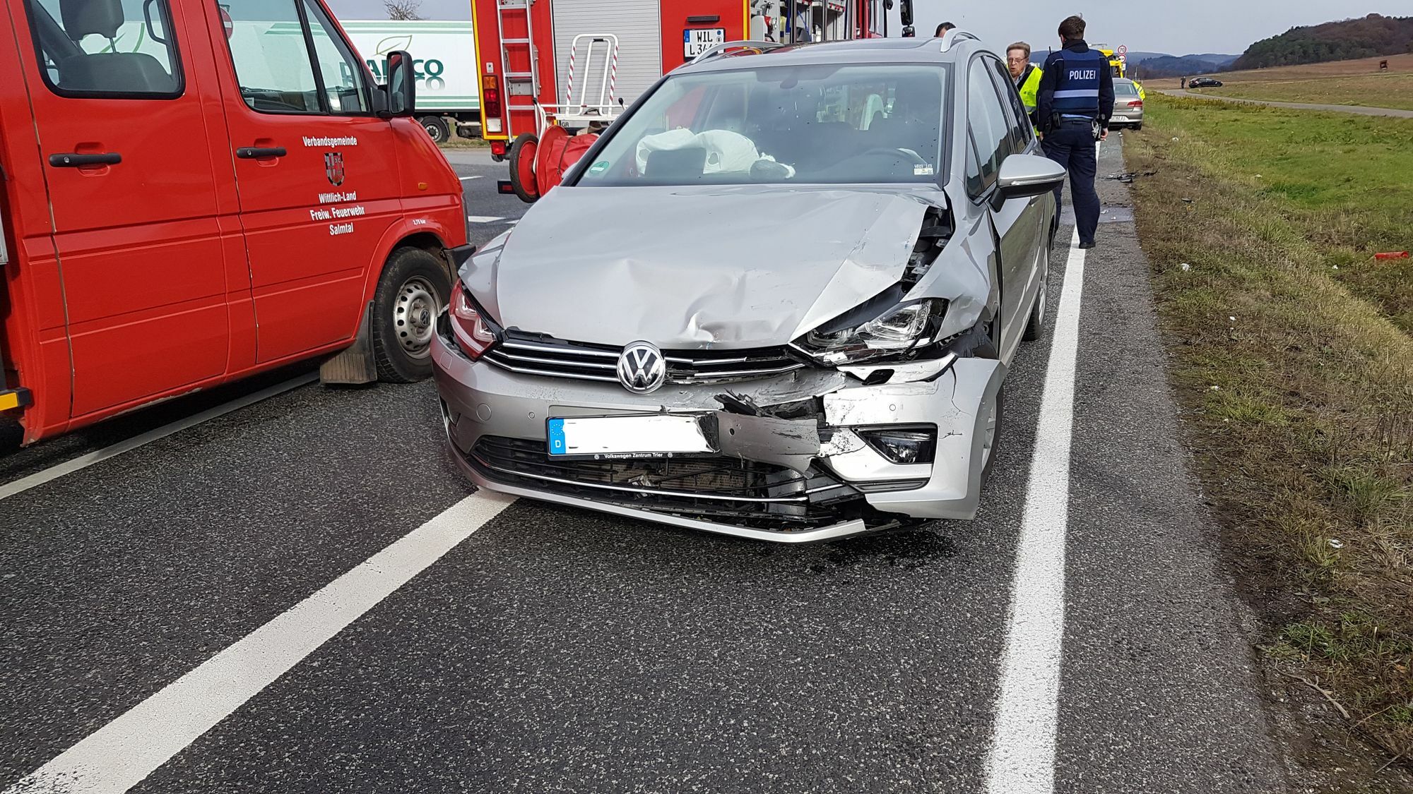Nach Angaben der Polizei kam es kam es im Einmündungsbereich der L 141 / BAB 60 zu einem Verkehrsunfall mit Personenschaden. Der Unfallverursacher beabsichtigte von der L 141 nach links auf die BAB 60 abzubiegen und übersah bei diesem Vorgang einen entgegenkommenden PKW, mit welchem er kollidierte. Durch die Wucht des Aufpralls geriet der unfallverursachende PKW mit seinem Heck auf den rechten Fahrstreifen und kollidierte dabei mit der Fahrerseite eines vorbeifahrenden Fahrzeugs. Ein Fahrzeug wurde derart beschädigt, dass die Feuerwehr die Fahrertür mit der Rettungsschere öffnen musste. Nach ersten Erkenntnissen wurde eine Person leicht verletzt, eine weitere zur medizinischen Versorgung in das KH Wittlich verbracht. Der Rettungshubschrauber Christoph 10 war im Einsatz. Alle beteiligten Fahrzeuge waren nicht mehr fahrbereit und mussten abgeschleppt werden. Es entstand erheblicher Sachschaden. Der Verkehr wurde an der Unfallstelle vorbeigeleitet. Ebenfalls im Einsatz: Die Polizeiinspektion Wittlich, die Feuerwehr Salmtal und der Wehrleiter Wittlich-Land. Ebenso das DRK aus Wittlich und Badem.