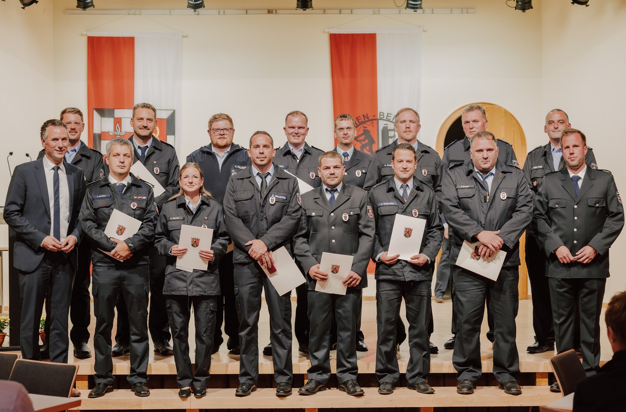 Sie erhielten das Feuerwehr-Ehrenzeichen des Landes Rheinland-Pfalz in Bronze, Silber oder Gold – je nach 15-, 25-, 35- oder 45-jähriger aktiver Dienstzeit.
