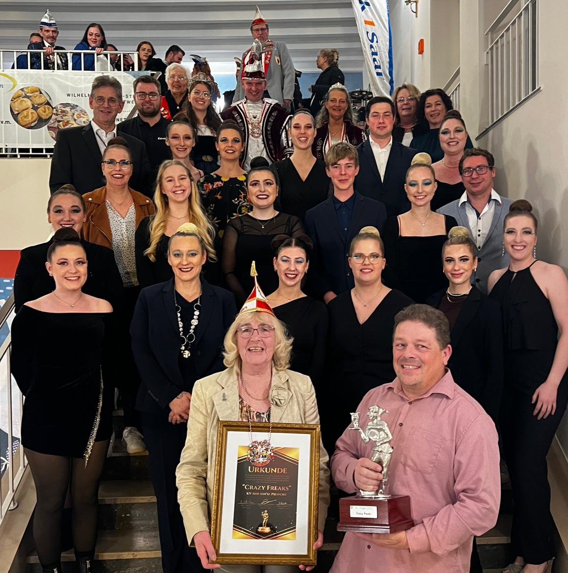 Die Schautanzgruppe und ihre langjährige Trainerin Marlies Seibel wurden im Schlosstheater Ottweiler mit dem Orden ausgezeichnet. Zu der festlichen Verleihung reiste eine große Delegation aus Piesport an, darunter das Prinzenpaar Prinz Kai und Prinzessin Michaela sowie die Piesporter Weinkönigin Katharina, die zuvor selbst bei den „Crazy Freaks“ tanzte. Die Veranstaltung bot ein abwechslungsreiches Programm aus Musik, Tanz und Büttenreden.