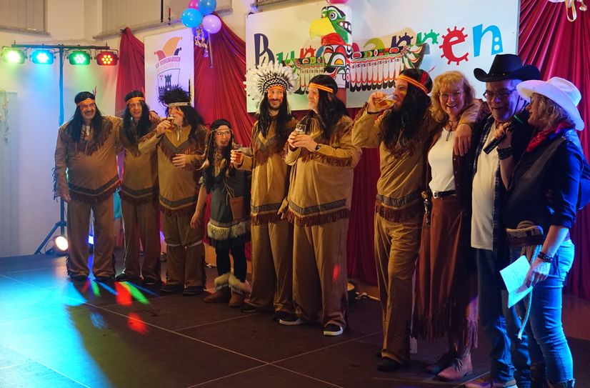 Da im vergangenen Jahr viel im Dorf geschehen ist, hatten die Tratschweiber aus Neuerburg ( Iris Arenz - Kusch und Heike Bauer) natürlich wieder viel zu berichten. Viel zu erzählen hatte auch Günther Hansen als Rentner auf Kreuzfahrt und zum Abschluss begeisterte das Männerballet (Christoph Ballmann, Uli Brust, Markus Jungbluth, Michael Mußweiler, Dirk Schömann, Marcel Rauch und Rainer Musweiler) als Indianer (Trainerinnen Ursula Haubs und Birgit Kappes) . Zum krönenden Finale kamen alle Akteure nochmal auf die Bühne. Anschließend sorgte DJ Fabi für tolle Stimmung.