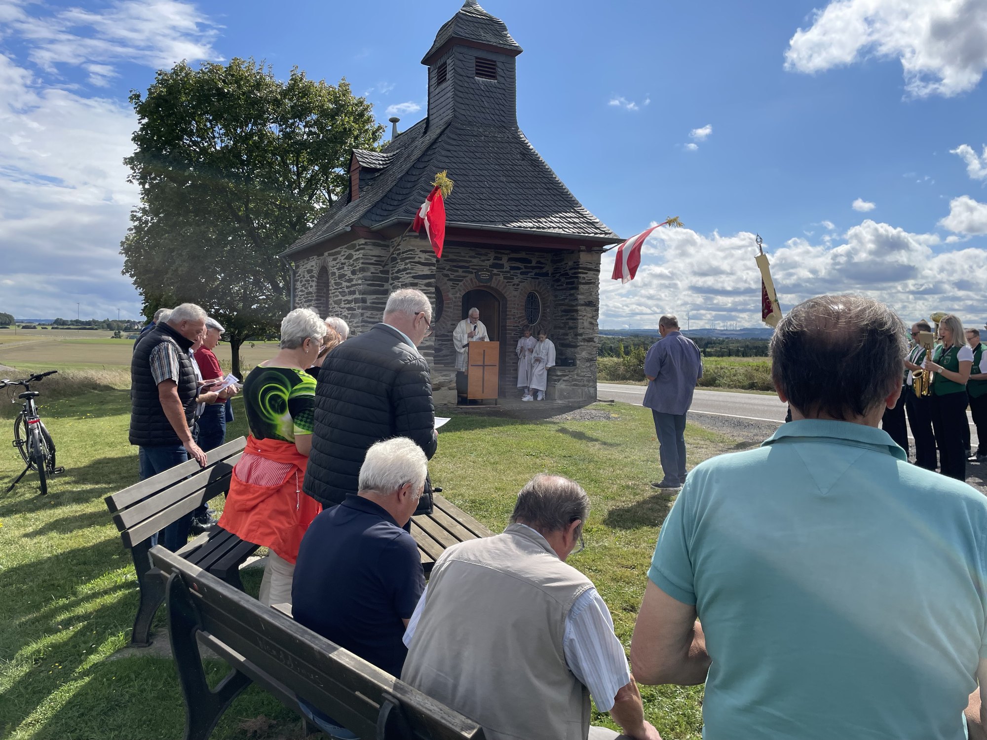 Lieg. Die Sonne brach mit Macht durch die anfänglichen dunkleren Regenwolken und gab den Blick frei auf die festlich geschmückte Wendelinuskapelle, die bereits seit 100 Jahren von frommen Pilgern aus dem gesamten Hunsrück aufgesucht wird. Pastor Hermann-Josef Floeck erinnerte an die Entstehungsgeschichte des kleinen Gotteshauses auf einer Anhöhe zwischen den beiden Hunsrückdörfern Lahr und Lieg, als im Jahre 1924 in St. Wendel die Gebeine des heiligen Wendelinus zur öffentlichen Verehrung ausgestellt worden waren und der damalige Lieger Pastor Schuh den Pfarrer Heibges in der saarländischen Stadt um Überlassung einer Reliquie bat. Bereits am 12. Oktober, also tatsächlich vor rund 100 Jahren, kam schließlich eine mit dem Siegel des Trierer Bischofs verschlossene Kapsel mit einer darin befindlichen Reliquie des heiligen Wendelinus in Lieg an. Pastor Anton Schuh, der von 1923 bis 1931 als Geistlicher in dem Hunsrückort wirkte, ließ dannauch ein Reliquiar in Koblenz bei der Firma Josef Müller anfertigen. Mit einer Genehmigung aus Trier veranstaltete er schließlich eine feierliche Wendelinusfeier.