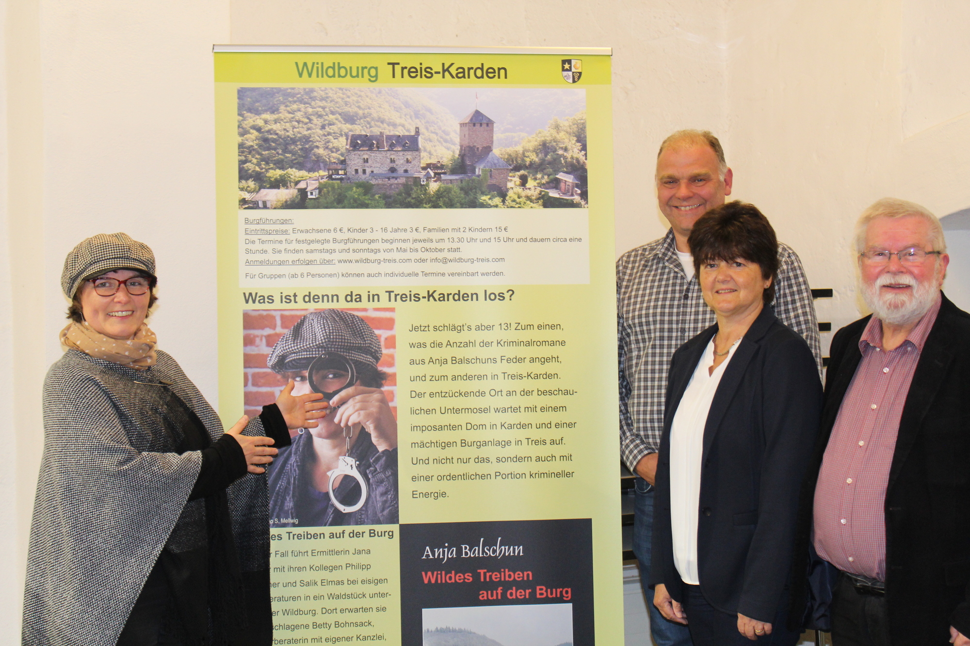 Treis-Karden. Die mittlerweile 29. Stiftslesung im historischen Karden war eigens von Londons Meisterdetektiv Sherlock Holmes, zumindestens ideell, mit seinem Besuch beehrt worden. Die nicht nur regional bekannte Krimi-Autorin Anja Balschun aus Koblenz hatte sich bei ihrer Lesung so gewandet, verschmitzt zeigte sie noch eine stilisierte Handschelle als Ohrschmuck. In ihren Eingangsworten schwärmte sie von den Schönheiten der Doppelgemeinde Treis-Karden, von ihrem Wein, von ihrer langen Geschichte, aber auch von den Möglichkeiten, die sie als Schriftstellerin sowohl auf der uralten Wildburg als auch im früheren klosterähnlichen Stiftsbezirk hatte.