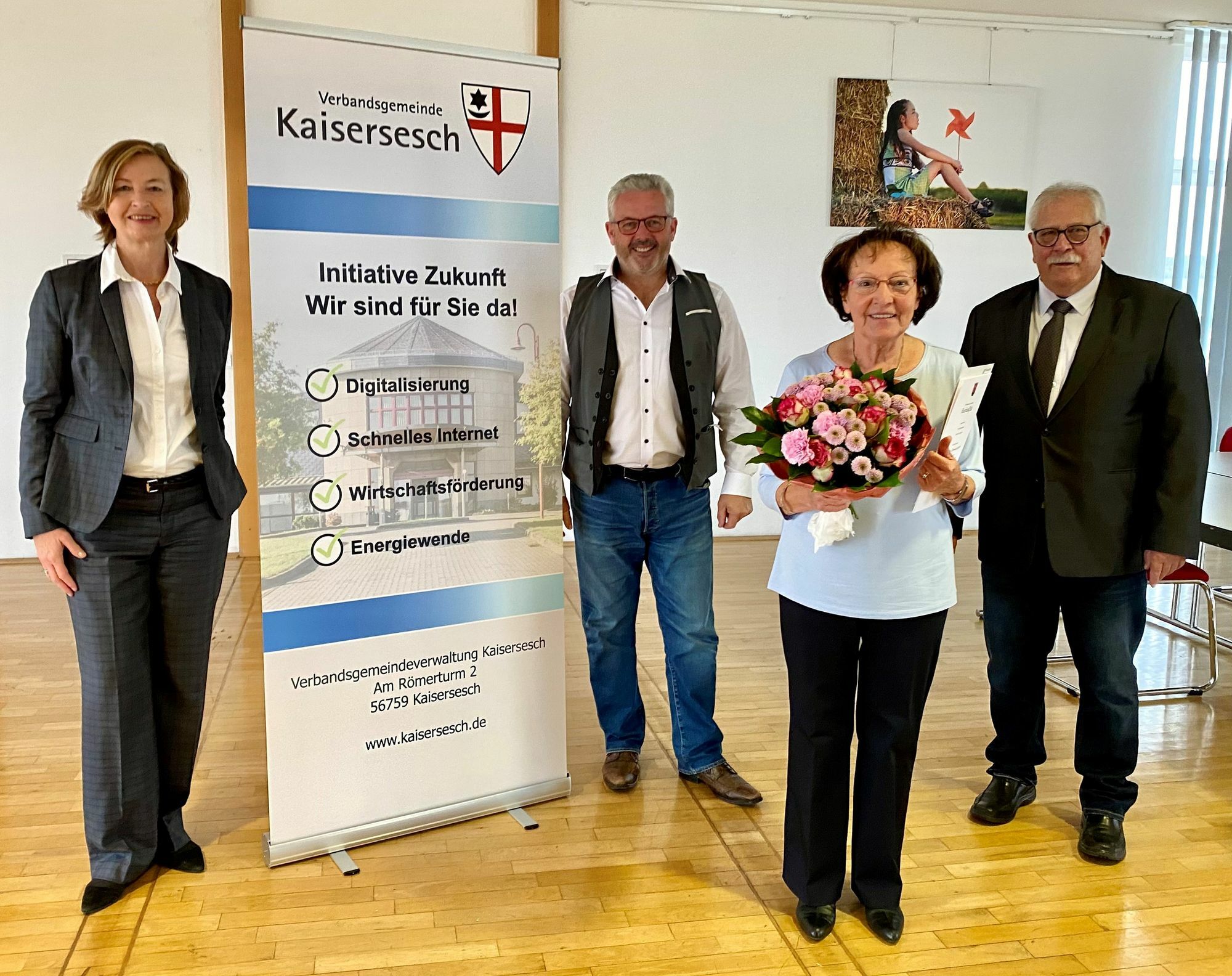 Im Rahmen einer Feierstunde wurde Gertrud Lorberger für ihre 50-jährige Tätigkeit im öffentlichen Dienst geehrt. Sie war vom 2. November 1971 bis Januar 2013 beim Dienstleistungszentrum Ländlicher Raum Westerwald-Osteifel (DLR), früher Kulturamt Mayen, angestellt. Zusätzlich zu ihrer beruflichen Laufbahn kamen noch eine Reihe von weiteren ehrenamtlichen Engagements. Unter anderem war sie Schöffin am Landgericht in Koblenz und von 1989 bis 2009 Mitglied im Gemeinderat von Masburg. Seit 2009 ist sie auch als Betreuerin aktiv. Noch während ihrer Tätigkeit beim DLR wurde sie am 26. Juni 2012 als erste Schiedsfrau im Schiedsbezirk Cochem-Zell für den Schiedsamtsbezirk Kaisersesch I (Düngenheim, Eppenberg, Hauroth, Kalenborn, Masburg, Müllenbach, Laubach-Leienkaul und Urmersbach) ernannt. Das Amt als Schiedsfrau übt sie bis heute aus. Die Cochemer Amtsgerichtsdirektorin Doris Linden dankte Gertrud Lorberger für ihre Arbeit im Dienst der Allgemeinheit als Beschäftigte des DLR sowie für die verantwortungsvolle Ausübung ihrer ehrenamtlichen Tätigkeit als Schiedsfrau. Sie überreichte ihr neben einer Dankurkunde der rheinland-pfälzischen Ministerpräsidentin Malu Dreyer auch ein Dankschreiben von Justizstaatssekretär Dr. Matthias Frey. Dem Dank und den Wünschen schlossen sich VG-Bürgermeister Albert Jung und Schiedsmann Arne Dybionka an. Informationen zum Schiedsamt Sehr häufig werden bei Streitigkeiten in Bagatellsachen die Gerichte angerufen, ohne dass die in Streit geratenen Parteien vorher den Versuch einer Streitschlichtung unternommen haben. Am Ende eines solchen Verfahrens steht neben dem erstrittenen Recht in vielen Fällen eine gescheiterte nachbarschaftliche Beziehung. Hier bietet die Schiedsamtsordnung des Landes Rheinland-Pfalz die Möglichkeit der außergerichtlichen Streitschlichtung durch eine Schiedsfrau oder einen Schiedsmann. Die in Streit geratenen Parteien können einen Antrag auf Schlichtung unter Schilderung des streitigen Sachverhaltes und Formulierung des Schlichtungsbegehrens bei der örtlich zuständigen Schiedsperson stellen. In Rheinland-Pfalz gibt es rund 500 Schiedspersonen, Stellvertreter und Stellvertreterinnen, die ehrenamtlich die ihnen übertragenen Aufgaben der außergerichtlichen Streitschlichtung wahrnehmen. Die Schiedsfrauen und Schiedsmänner entlasten hierbei die Gerichtsbarkeit und stellen zwischen den Streitenden einen dauerhaften und dabei auch noch kostengünstigen Rechtsfrieden her. Weitere Informationen online unter: www.cochem-zell-online.de unter dem Schlagwort Schiedsamt. Foto: VG Kaisersesch