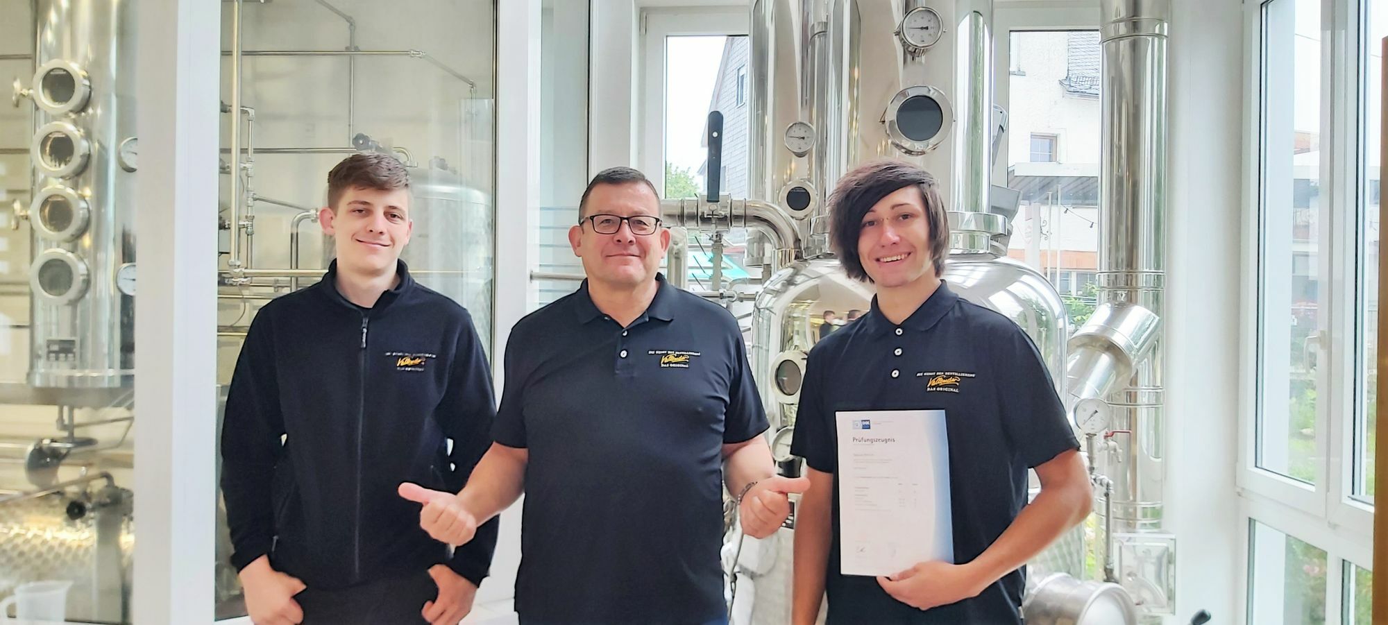 Manuel Petrich begann 2018, nach einem bereits abgeschlossenen Studium für Verfahrenstechnik, die Ausbildung als Brenner und Destillateur in der Kailer Brennerei. "In der Corona-Krise 2020 erarbeiteten beide Lehrlinge die Konzeption für die Herstellung von Desinfektionsmitteln. Eine tolle Erfahrung, wie Mario und Manuel diese Krise gemeistert haben und so einen wertvollen Beitrag zur Versorgung der Bevölkerung und der Sicherung des Unternehmens geleistet haben", lobt Hubertus Vallendar den Brenner-Nachwuchs. Manuel Petrich arbeitet zunächst weiter in der Brennerei Vallendar und schaut erwartungsvoll in die Zukunft. "Mir ist es wichtig, dass ein Auszubildender nach der Lehre überall auf dieser Erde zurechtkommt", bemerkt Hubertus Vallendar zu den Zukunftsaussichten des Meisterlehrlings, der mit Begeisterung und Bodenständigkeit hinzufügt: "Ich bin sehr dankbar, dass ich meine Ausbildung hier absolvieren durfte und freue mich auf die weitere Zeit in unserem tollen Team." Weitere Informationen: www.vallendar.de Foto: privat