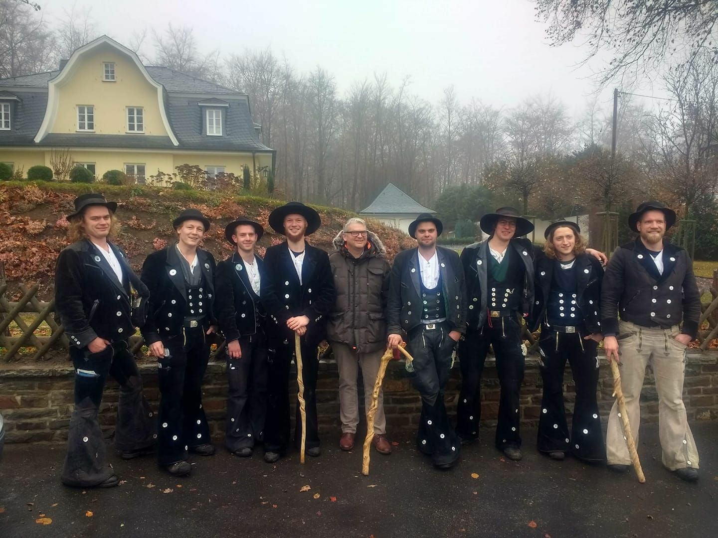 In seiner Wanderschaft als Handwerksbursche ist Marvin Wilhelmi auf die Unterstützung der Bevölkerung angewiesen, denn sein Schlafplatz und seine Arbeit muss er sich immer wieder aufs Neue suchen. Mindestens drei Jahre und einem Tag darf er seinem Heimatort nicht näher als 50 Kilometer kommen. Die sogenannte Kluft muss immer getragen werden. Bestandteile sind insbesondere die weite Schlaghose aus Cord oder Deutschleder, eine Weste mit acht Knöpfen und ein Jackett mit sechs Knöpfen sowie ein weißes Hemd. Dazu darf ein schwarzer Hut mit breiter Krempe - es kann auch ein Zylinder, Schlapphut oder eine Melone sein - nicht fehlen. Zu guter Letzt rundet der Wanderstab - "Stenz" - das besondere Erscheinungsbild des Wandergesellen ab. Foto: VG Kaisersesch