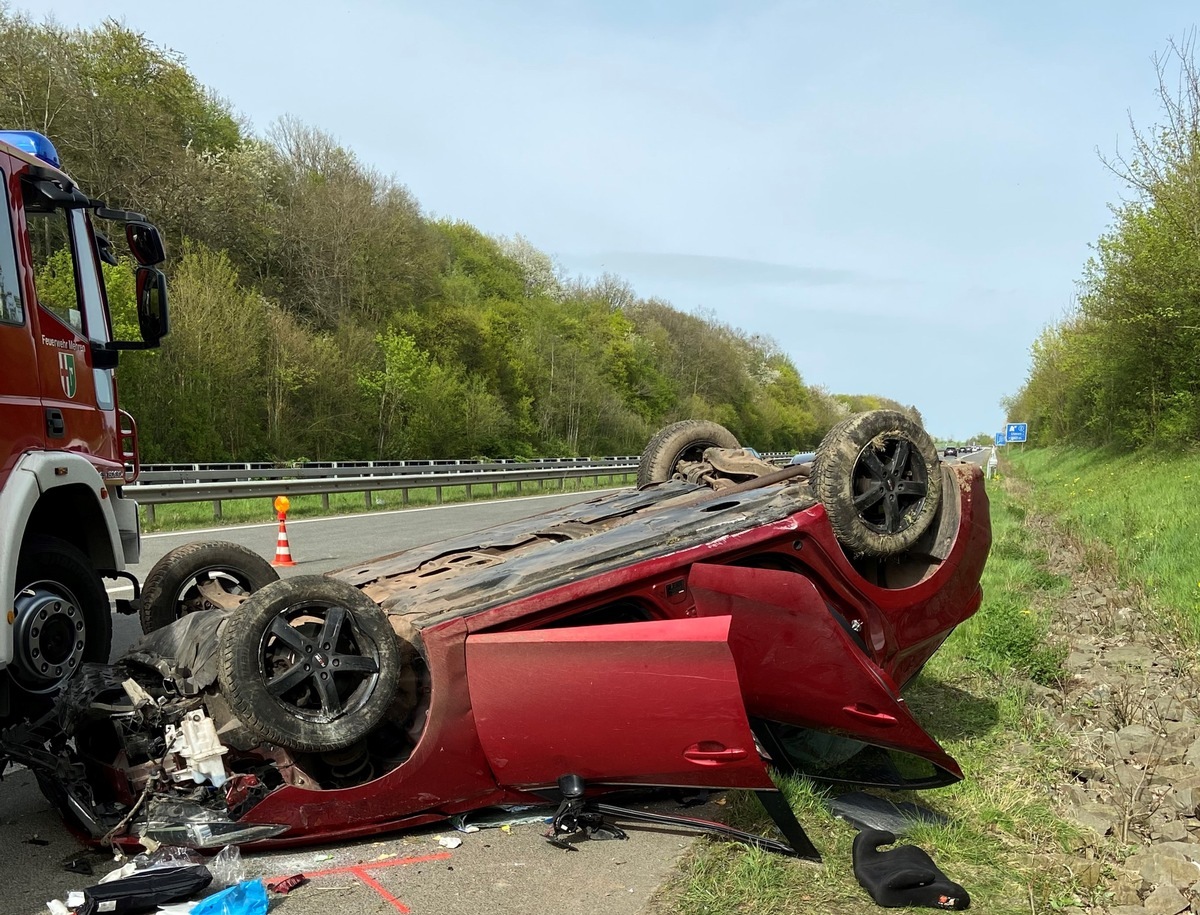Ulmen. Am heutigen Sonntagnachmittag, gegen 14.15 Uhr, ereignete sich ein schwerer Verkehrsunfall auf der A48, Richtungsfahrbahn Köln/Koblenz, zwischen dem Autobahndreieck Vulkaneifel und der Anschlussstelle Ulmen. Eine 48-jährige Fahrzeugführerin, welche in Begleitung ihrer beiden Kinder unterwegs war, befuhr mit ihrem Fahrzeug den linken Fahrstreifen. Im Bereich einer Steigung beabsichtigte ein Wohnmobil ein anderes Fahrzeug zu überholen und scherte hierzu auf den linken Fahrstreifen aus. Die herannahende Fahrzeugführerin lenkte ihren Pkw nach rechts um eine Kollision mit dem Wohnmobil zu vermeiden und kam dabei von der Fahrbahn ab, wo sie sich im angrenzenden Böschungsbereich überschlug und letztendlich im Bereich des Standstreifens auf dem Dach zum Liegen kam. Die Unfallbeteiligte wurde lebensgefährlich verletzt und mittels Rettungshubschrauber in das Bundeswehrzentralkrankenhaus nach Koblenz verbracht.