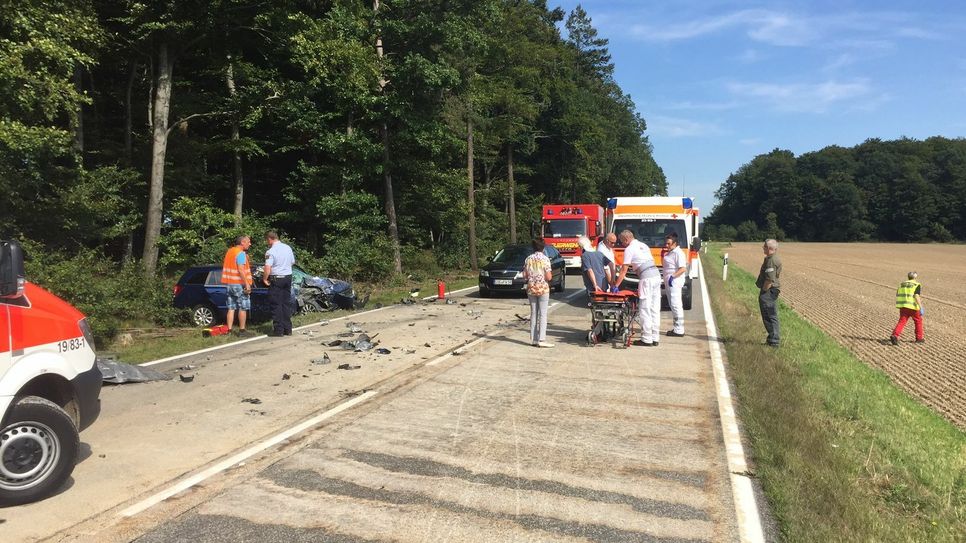 Die verletzten Kinder wurden mit Rettungshubschraubern in Krankenhäuser geflogen. Nach ersten Erkenntnissen der Polizei besteht keine Lebensgefahr. Der leichter verletzte Pkw-Fahrer wurde vom DRK in ein Krankenhaus gebracht.   Foto: Polizei