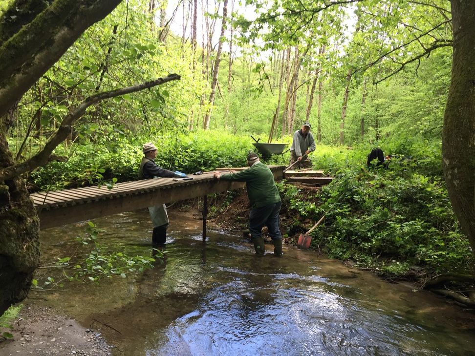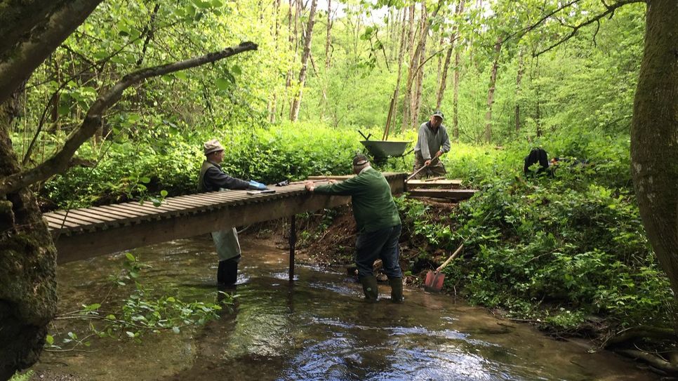 Mitglieder des Bautrupps des Eifelvereins Kaisersesch haben mehrere Brücken im Pommerbachtal instand gesetzt, die im Winter stark gelitten hatten.