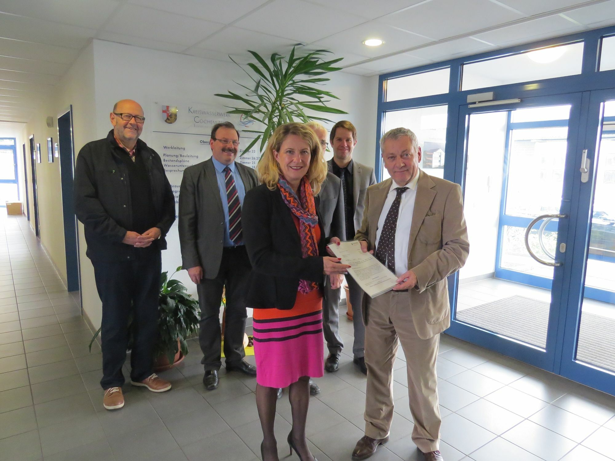 In dieser Studie sollen noch eventuell unterversorgte Bereiche ermittelt sowie Lösungsmöglichkeiten zur breitbandigen Erschließung erarbeitet werden. Die Studie soll als Grundlagenstudie eine technologie- und anbieterneutrale Breitbandversorgung mit mindestens 50 Mbit/s im Download für 95, 85 und 75 Prozent der Haushalte darstellen. Untersucht werden sollen dabei Gebiete, in denen bisher keine flächendeckende (95-prozentige) Versorgung mit einer Datenrate von mindestens 30 Mbit/s vorhanden ist sowie Gebiete mit einer bisherigen Versorgung von 16 Mbit/s. Zur Finanzierung der Studie wurde beim Breitband-Kompetenzzentrum Rheinland-Pfalz, Ministerium des Innern und für Sport, eine 90-prozentige Zuwendung bewilligt. Der Förderbescheid in Höhe von 44.799,93 Euro wurde jetzt durch Staatssekretärin Heike Raab übergeben. Nach Vorliegen der Ergebnisse der Studie wird geprüft, ob und inwieweit Umsetzungsmaßnahmen im Landkreis Cochem-Zell erforderlich sind. Landrat Manfred Schnur freute sich über die Unterstützung: "Uns ist es wichtig, dass alle Bereiche im Landkreis flächendeckend an eine hochleistungsfähige Breitbandinfrastruktur angeschlossen sind. Daher ist es sehr erfreulich, dass auch das Land Rheinland-Pfalz hier seine Unterstützung anbietet. Durch die 90-prozentige Finanzierung der Kosten der Machbarkeitsstudie ist es uns möglich, bestehende Problembereiche aufzuzeigen, um auch für unsere Randbereiche optimale Lösungen zu finden." Foto: privat www.cochem-zell.de