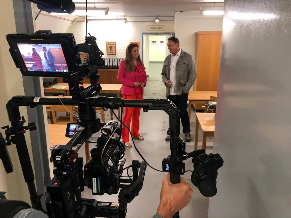 Petra Reuter und Axel Bulthaupt bei den Dreharbeiten im Bundesbank-Bunker.
