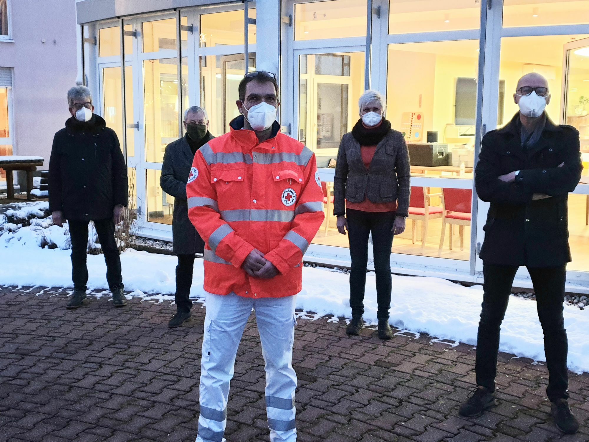 Am heutigen Dienstag starteten die Impfungen gegen das COVID-19-Virus durch mobile Impfteams im Landkreis Cochem-Zell im „Hildegard von Bingen Senioren-Zentrum Seeblick“ in Ulmen. Geimpft werden zunächst Bewohnerinnen und Bewohner sowie Beschäftigte der Alten- und Pflegeheime. Mehrere Senioren- und Pflegeheime im Landkreis Cochem-Zell haben inzwischen die Vorbereitungen für die Corona-Impfung abgeschlossen, so dass die mobilen Impfteams nun auch diese Einrichtungen aufsuchen können. Um möglichst alle gemeldeten Personen des Seniorenheimes – rund 195 Personen - an einem Tag zu impfen, wurde heute bereits ab 09:00 Uhr im Seniorenheim mit dem Impfen begonnen. Landrat Manfred Schnur, der Bürgermeister der Verbandsgemeinde Ulmen, Alfred Steimers sowie die Einrichtungsleiterin Helene Astapowski waren zum Impfstart vor Ort in der Eifelstadt. Alle drei freuten sich unisono, dass es nun endlich einen Lichtblick inmitten der Pandemie gibt, der uns Hoffnung für 2021 schenkt. Das Impfteam rund um Dieter Nickel (DRK Teamleiter), Dr. Alois Pitzen, Ulmen, Apotheker Thomas Hanhart (Adler-Apotheke Kaisersesch), Jennifer Schäfer (PTA, Adler Apotheke Kaisersesch), Apothekerin Dorothee Kratz (Ahorn-Apotheke Boppard-Buchholz, Burgapotheke Cochem) sowie Birgit Bock (PTA, Ahorn-Apotheke Boppard-Buchholz) ist seit heute früh im Einsatz. Darüber hinaus ist auch das Impfzentrum des Landkreises in Landkern bereits seit Mitte Dezember einsatzbereit. Auch hier starten ab Donnerstag, 07.01.2021 die Impfungen. Seit gestern sind Anmeldungen zur Impfung für Personen über 80 Jahren – die in ihren eigenen vier Wänden wohnen – möglich. Eine Terminvereinbarung ist telefonisch unter 0800 / 57 58 100 oder online über die Internetseite www.impftermin.rlp.de möglich.