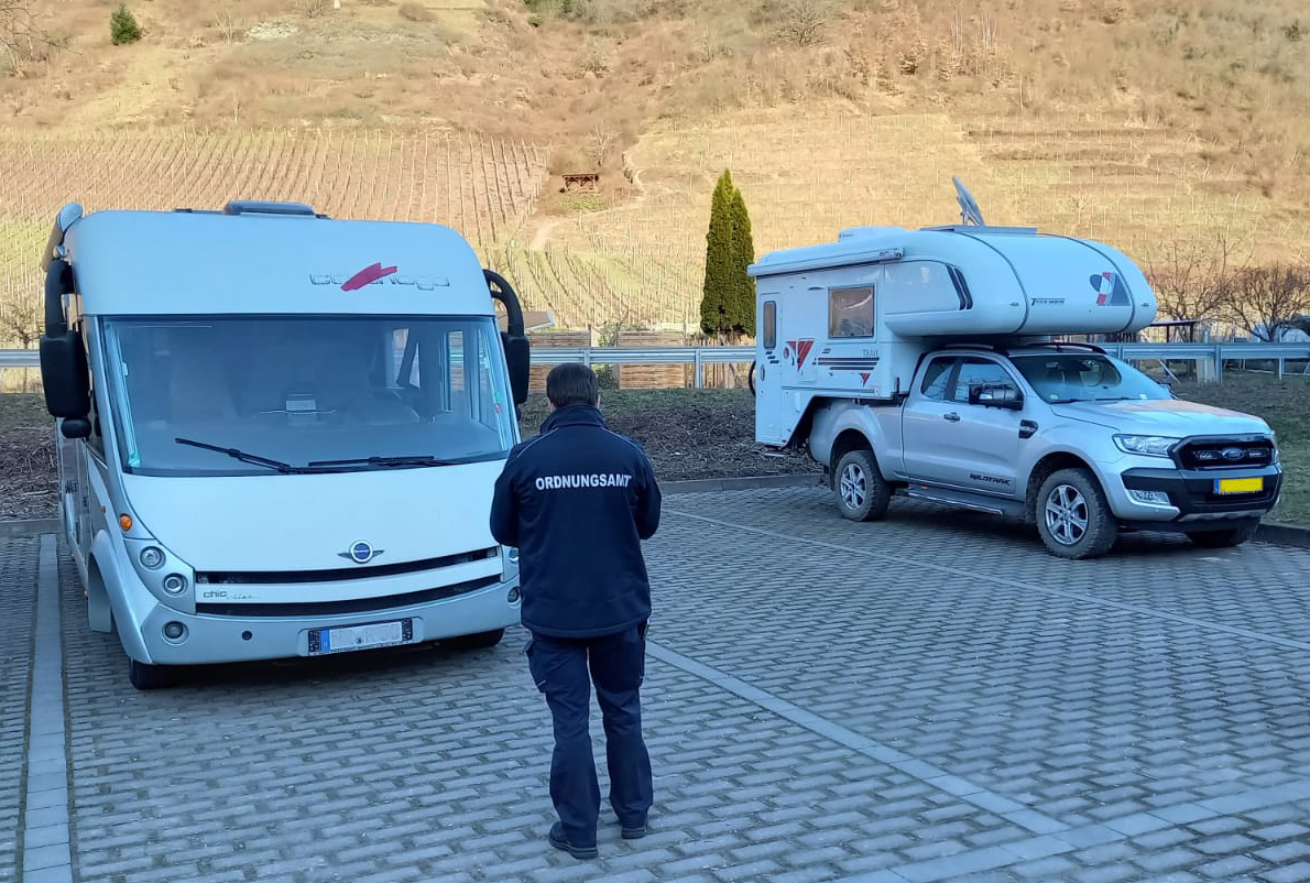 Die Kontrollen der Polizei konzentrierten sich besonders auf das Tragen der vorgeschriebenen Mund-Nasen-Bedeckung und unzulässige Personenansammlungen beziehungsweise die Nichteinhaltung der Mindestabstände besonders in Cochem sowie an beliebten Wander- und Ausflugzielen. Die Verbandsgemeinde Cochem begleitete mit Mitarbeitern des Ordnungsamtes mit Kontrollen im Bereich des zurzeit noch durch die Corona-Bekämpfungsverordnung verbotenen Übernachtens zu touristischen Zwecken auch in Wohnmobilen. "Es kann nicht sein, dass in Zeiten, in denen auch in unserer Region Hotels, Gaststätten, Pensionen, Ferienwohnungen, Camping- und Wohnmobilstellplätze geschlossen werden müssen, das Übernachten in Wohnmobilen auf Parkplätzen, oftmals aber auch in freier Natur, toleriert wird", so VG-Bürgermeister Wolfgang Lambertz. Besonders an den vergangenen Wochenenden sei ein vermehrtes Aufkommen von Wohnmobilen auf Stell- und Parkplätzen, oft auch auf Wirtschafts- und Waldwegen festzustellen gewesen. Am Wochenende fanden hierzu besonders in den Ortschaften entlang der Mosel Kontrollen statt, bei denen zahlreiche "Wohnmobilisten" angetroffen wurden, die durch die Mitarbeiter des Ordnungsamtes zur Weiterfahrt aufgefordert wurden, sofern eine Übernachtungsabsicht erkennbar war. Bei diesen Kontrollen sei auch auf "wildes" Campen geachtet worden. "Wir freuen uns darauf, sobald es die Entwicklung der Corona-Pandemie zulässt, alle ,Wohnmobilisten' als Gäste zu begrüßen", so Lambertz weiter. "Wildes Übernachten kann aber auch dann nicht akzeptiert werden." Schon 2020 sei eine vermehrte Anzahl von Übernachtungen von "Wohnmobilisten" in der freien Natur festzustellen gewesen. Dies sei besonders bedauerlich, da diese oftmals im großen Umfang Müll aber auch sonstige, wenn auch menschliche, aber nicht in die Natur gehörende Hinterlassenschaften zurückließen. Besonders die Kontrollen im Außenbereich sollen auch nach einer eventuellen Erleichterung der Corona-Maßnahmen fortgesetzt werden. Foto: VG Cochem www.vgcochem.de