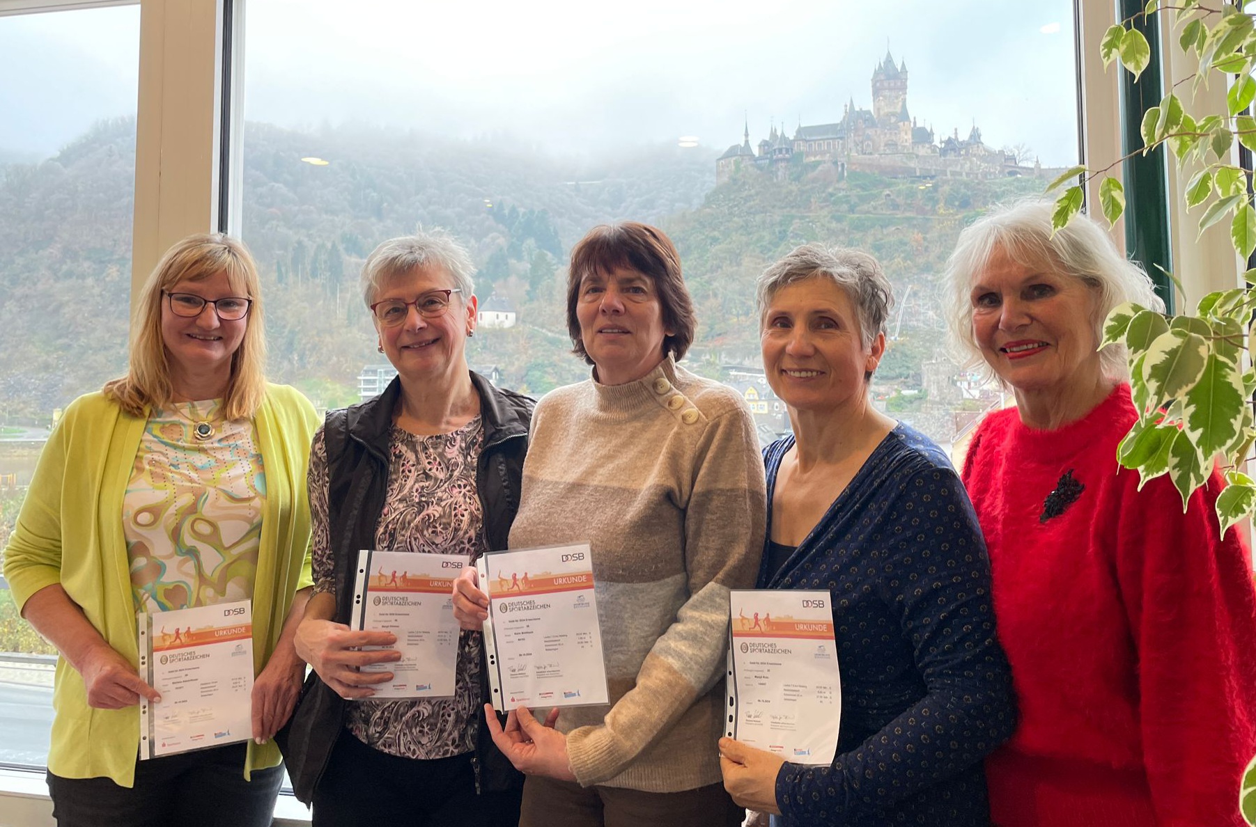 17 Mitgliederinnen der Spvgg. Cochem trafen sich zum Jahresabschluß im Hotel Zum Rosenhügel. Nach dem gemeinsamen Frühstück überreichten Übungsleiter Michael Kausch und Sportabzeichenprüferin Elfi Keske den vier erfolgreichen Sportlerinnen Barbara Allard-Reuter, Margit Klinkner, Karin Breitbach und Margit Rutz ihre Deutsches Sportabzeichen-Urkunden mit Goldleistungen. Auch im kommenden Jahr 2025 bietet die Spvgg. Cochem allen interessierten Sportlern und Sportlerinnen die Möglichkeit, das Deutsche Sportabzeichen zu erwerben.