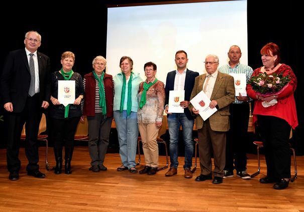 Ein Höhepunkt der Veranstaltung war die Verleihung der Ehrenamtspreise der Verbandsgemeinde Zell. Diese gingen an die "Stillen Helfer" Hüseyn Akin, Hans Trippen und Günter Thiesen (alle aus Bullay). Hüseyn Akin ist ehrenamtlich als Vorstandsmitglied und Dialog-Beauftragter der Türkisch-Islamischen Gemeinde in Bullay tätig. In dieser Funktion bietet er Moschee-Führungen für Schulklassen und andere Gruppen an, um ihnen den islamischen Glauben verständlicher zu machen und dadurch Brücken im Zusammenleben zu bauen. Auch im Flüchtlingsnetzwerk ist er aktiv und übernimmt neben der Sprachförderung für Flüchtlinge auch die Hausaufgabenbetreuung für Migrationskinder sowie Ferien-Projekte. Hans Trippen ist seit über 30 Jahren engagiertes Mitglied im "Komitee Bullayer Fastnacht". Auch in der Freiwilligen Feuerwehr Bullay war er mehr als 30 Jahre aktiv und ist heute noch in der Alterskameradschaft. Ebenso unterstützt er den Ortsverein der Arbeiterwohlfahrt der Verbandsgemeinde Zell. Dort ist er der verlängerte Arm der Vorsitzenden Gaby Trippen - seiner Frau - und hilft bei allen anstehenden Veranstaltungen. Ebenfalls aktiv ist er beim neuen Projekt "Bullay - für dich und mich". Günter Thiesen engagiert sich schon seit über 50 Jahren im Sport und hier besonders im Bereich des Jugendfußballs. Schon früh übernahm er wichtige Funktionen im Vorstand des TuS Merl. Heute ist er unter anderem Kreisjugendleiter und Kreisbildungsbeauftragter im Fußballkreis Mosel, Ehrenamtsbeauftragter im SV Zell und Mitglied des Sportkreisjugendausschuss des Sportkreises Cochem-Zell. Auch organisiert er mit viel Engagement die Feriencamps des Fußballkreises Mosel. Daneben arbeitet er heute noch im Arbeitskreis 50Aktiv der Verbandsgemeinde Zell mit. Der Ehrenamtsförderpreis für „innovative/nachahmenswerte Projekte ging in diesem Jahr an die Frauenselbsthilfe nach Krebs e.V., Gruppe Traben-Trarbach-Zell. Die 1992 gegründete Gruppe möchte Betroffene auffangen, informieren und begleiten und so Hoffnung vermitteln. Dabei stellt die Gruppe eine ergänzende Form der psychosozialen Unterstützung während und nach einer Krebserkrankung dar. Die 33 Mitglieder der Frauenselbsthilfe nach Krebs nehmen auch an vielen Seminaren, Schulungen, Landes- und Bundestagungen, Patienten/Arztkongressen, sowie Veranstaltungen der Deutschen Krebshilfe oder der Selbsthilfekontaktstelle SEKIS teil. Dazu werden auch Vorträge von Fachärzten und Onkologen, Fachleuten aus dem Sozial- und Versicherungswesen, Ernährungsberatern und vielen anderen Experten organisiert. Foto: VG Zell www.zell-mosel.de