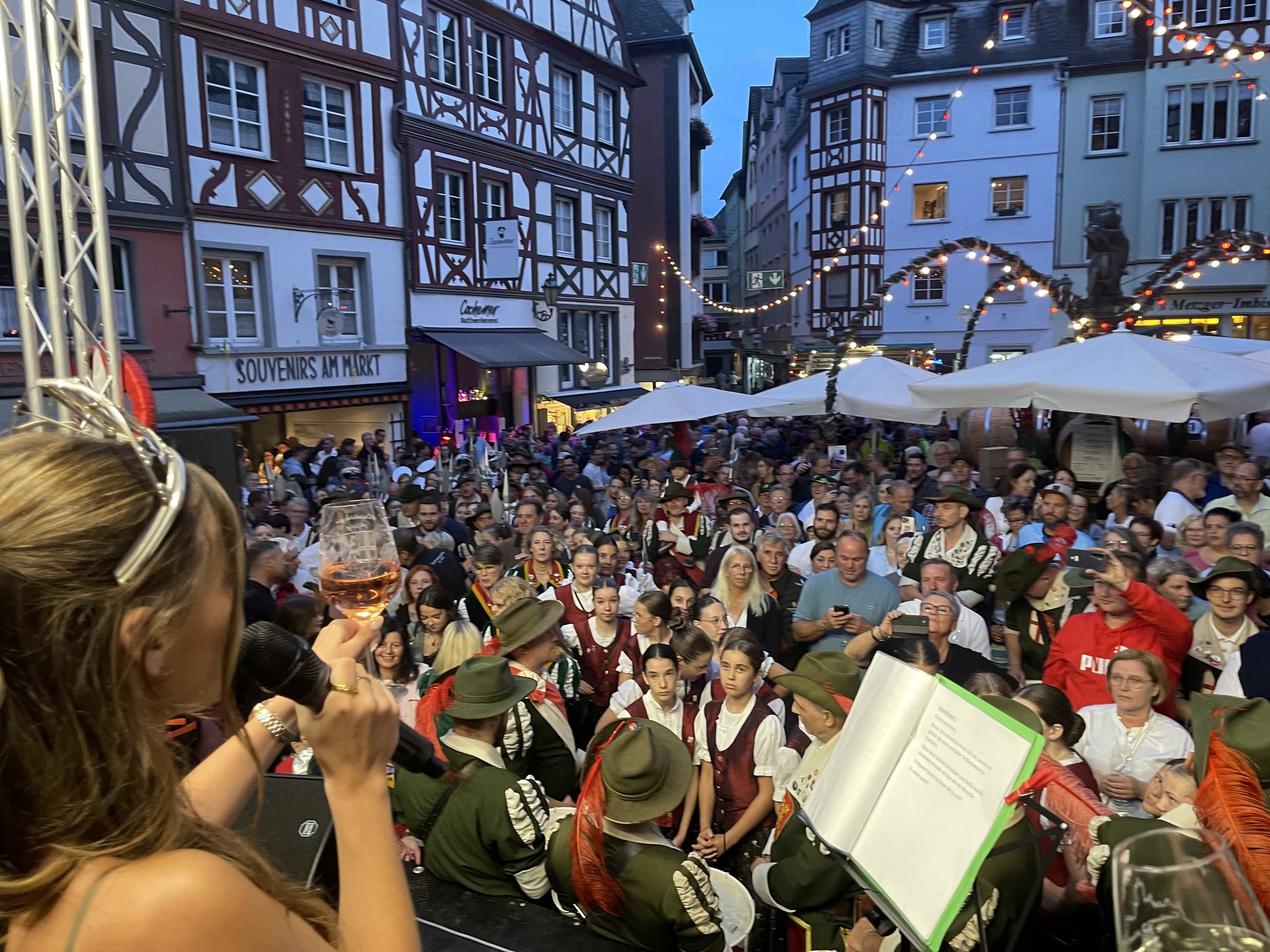 Cochem. Das Cochemer Heimat- und Weinfest 2025 ist offiziell eröffnet: Stadtbürgermeister Walter Schmitz gab soeben den symbolischen Startschuss. Bis Montag wird in der Moselstadt gefeiert. Höhepunkte sind der Festumzug und das große Feuerwerk am Sonntag. Offiziell im Amt ist nun auch Cochems Weinkönigin Alicia Steffens. Gemeinsam mit ihrer Weinprinzessin Lea Schlaug wurde sie heute Abend gekrönt und wird in den kommenden zwei Jahren die Stadt Cochem und den Cochemer Wein repräsentieren.