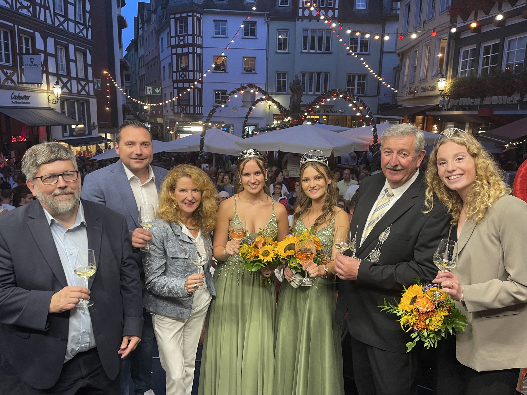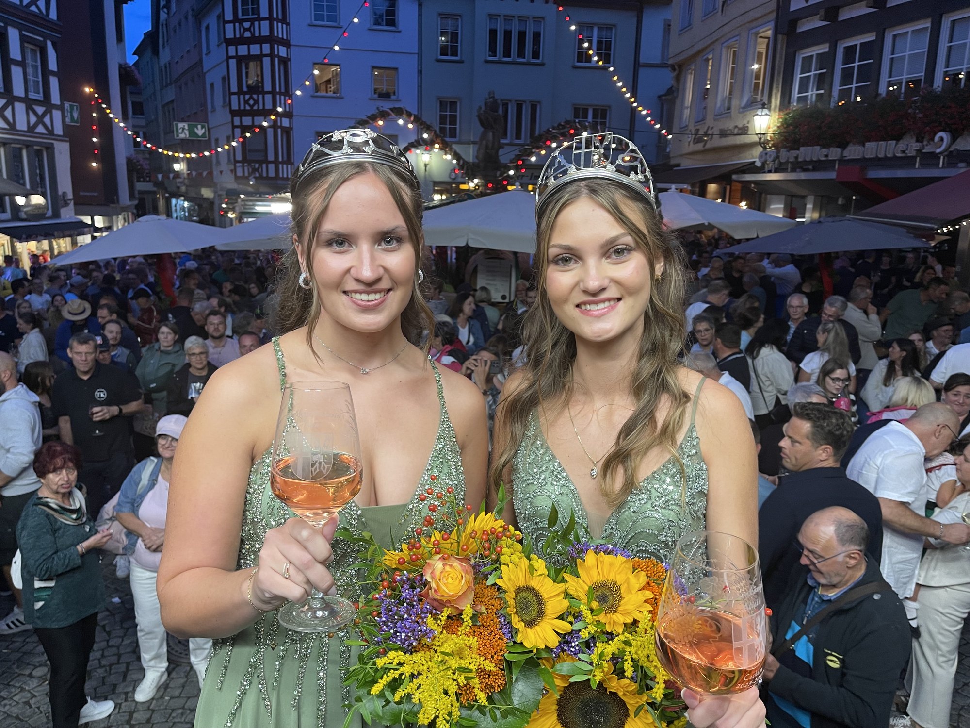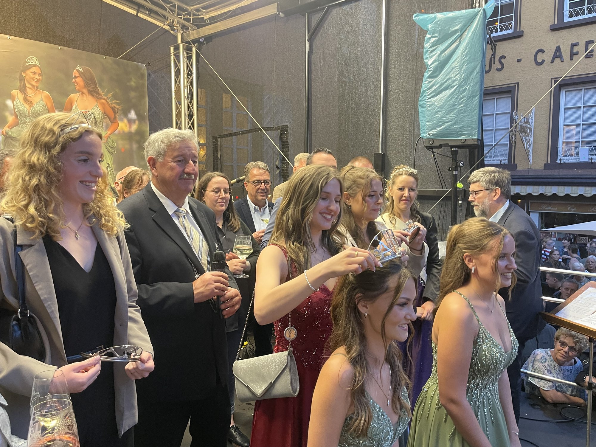 Zeitgleich verabschiedete sich die bisherige Weinkönigin Victoria Göbel mit ihrer Prinzessin Johanna Heimes. Stadtbürgermeister Walter Schmitz dankte beiden für ihren engagierten Einsatz.